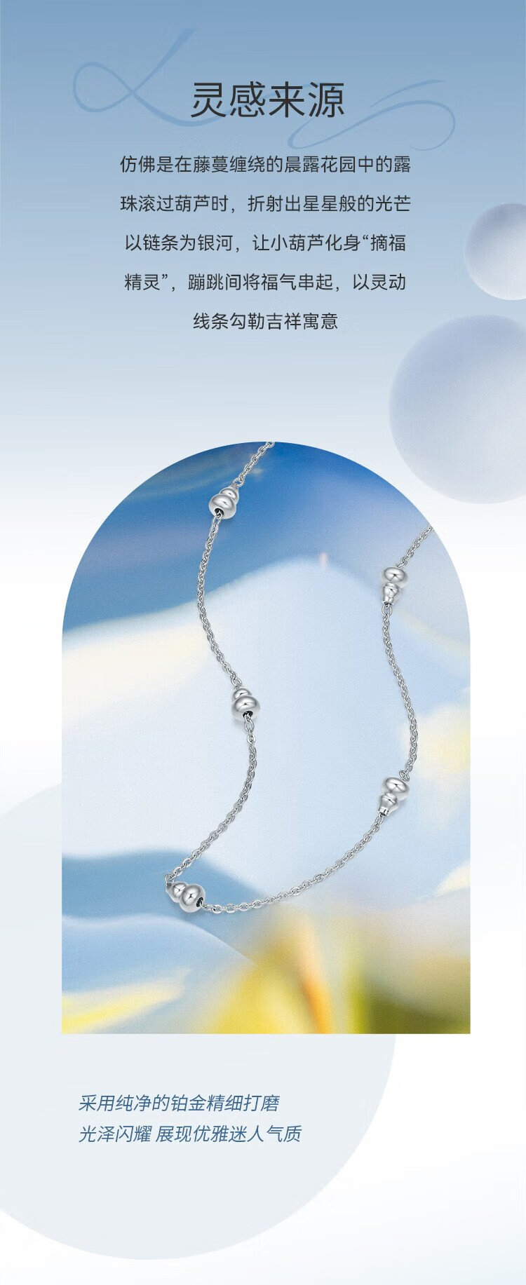 Liuguifu Jewelry Platinum Necklace Condensing Gourd PT950 Platinum Chain Clavicle Chain Women's PT0300047 4.30g