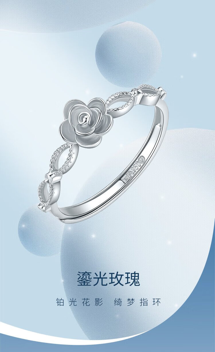 Liuguifu Jewelry Platinum Ring Gilt Rose PT950 Platinum Ring Open Ring Women PT0100114 2.65g
