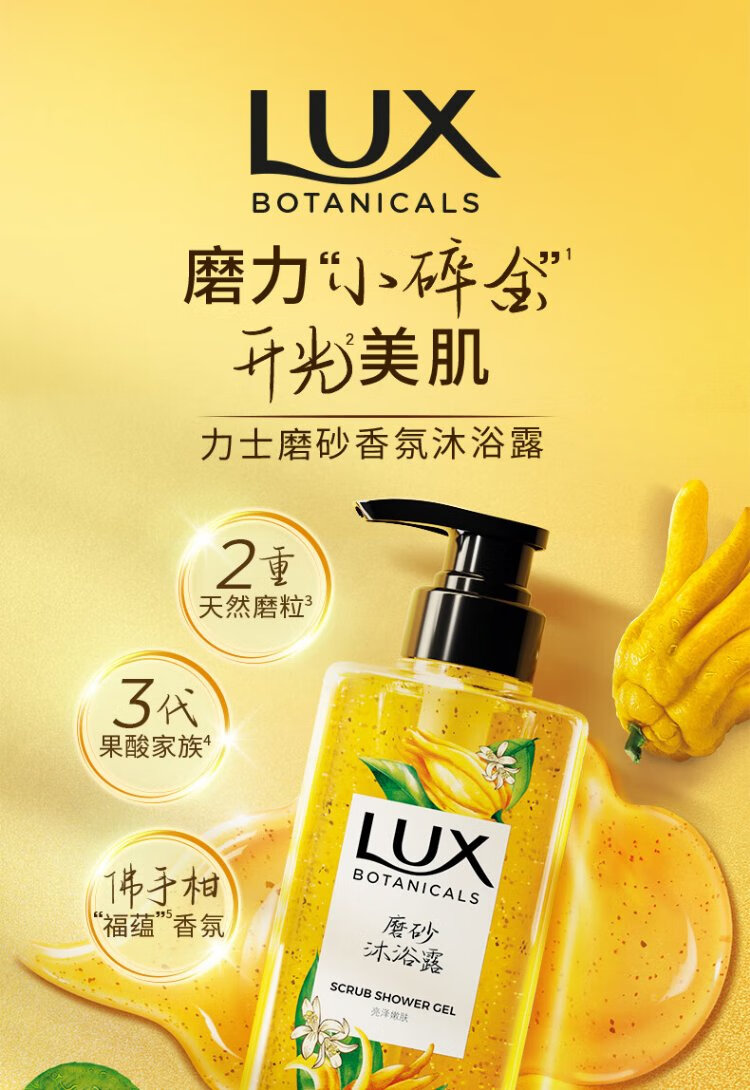 Lux Plant Extract Scrub Shower Gel Bergamot Scent 400g Contains Fruit Acid Exfoliation