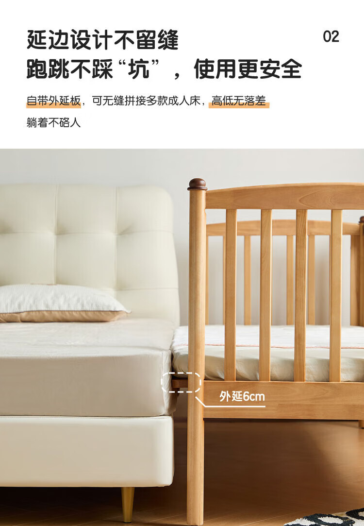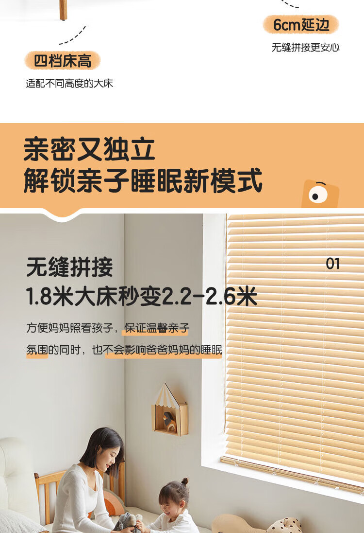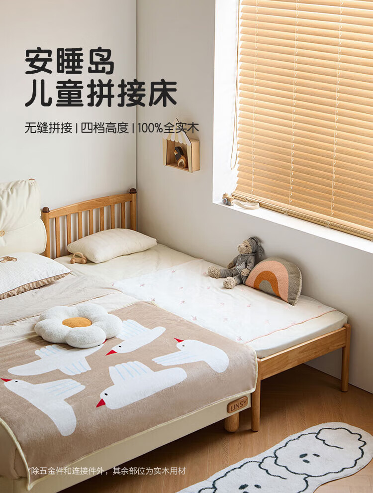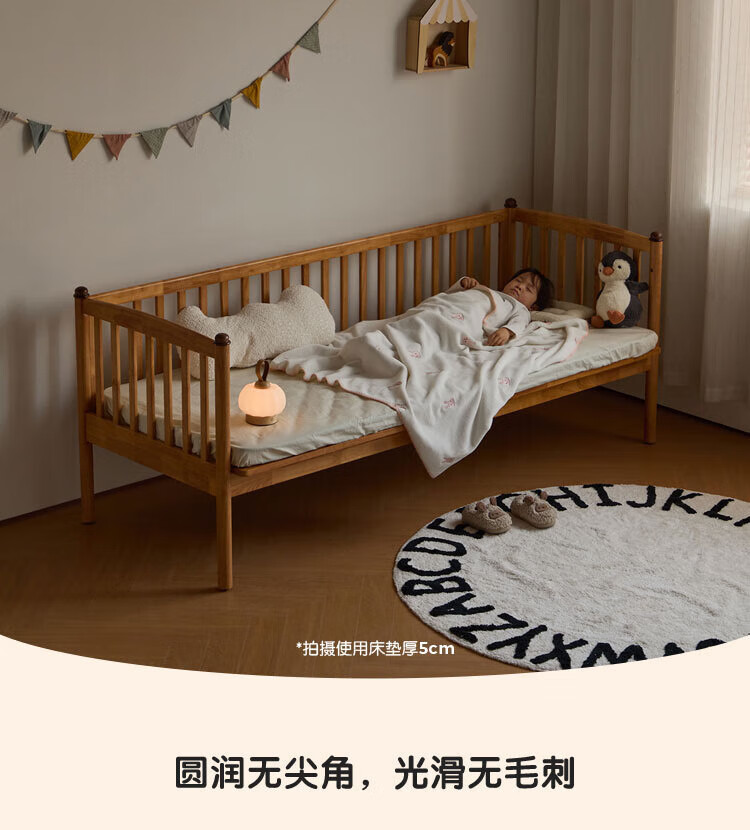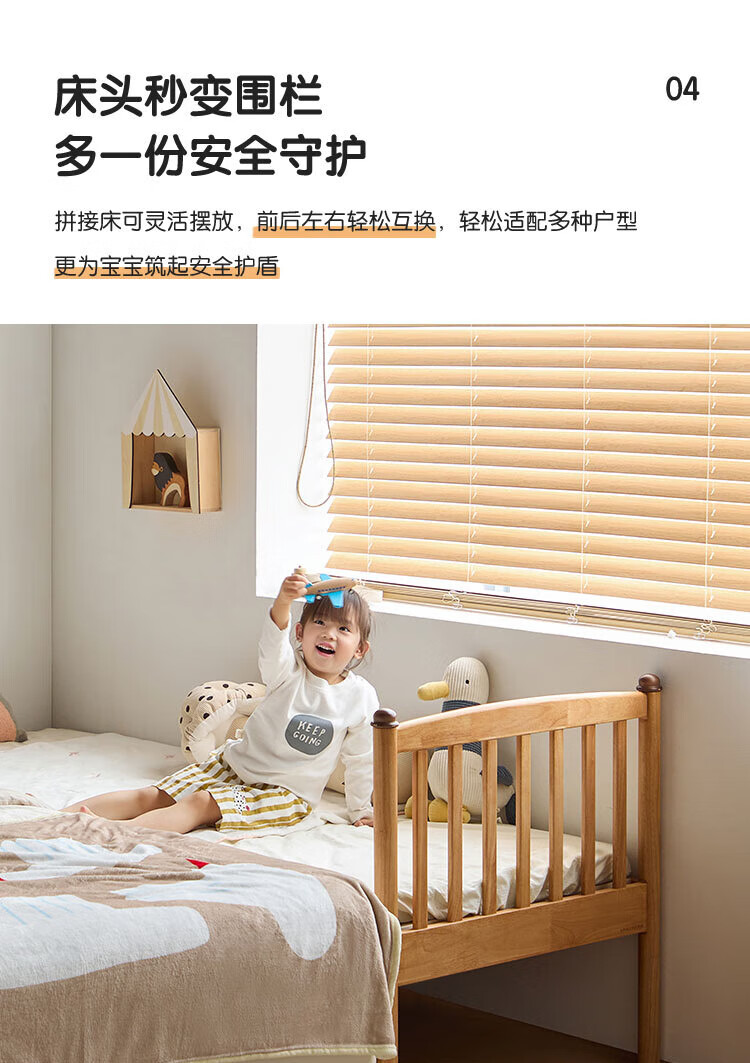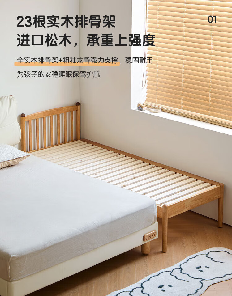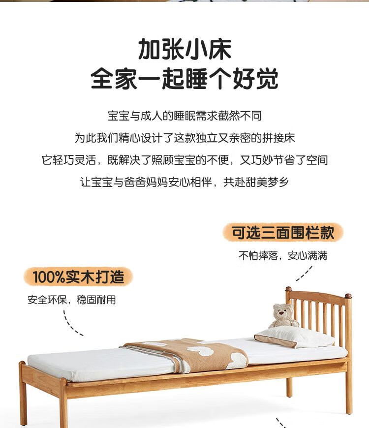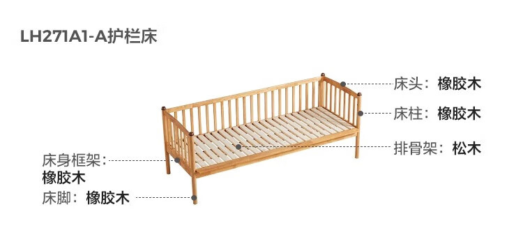 Lin's Home Furnishing 0.6*2.0m solid wood spliced bed baby with guardrails large bed side widening baby and adults can sleep LH271A1