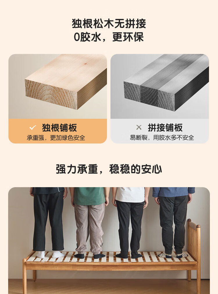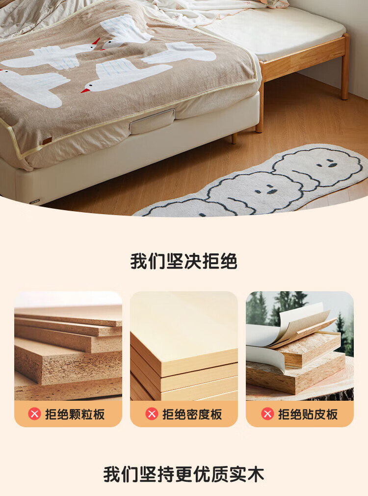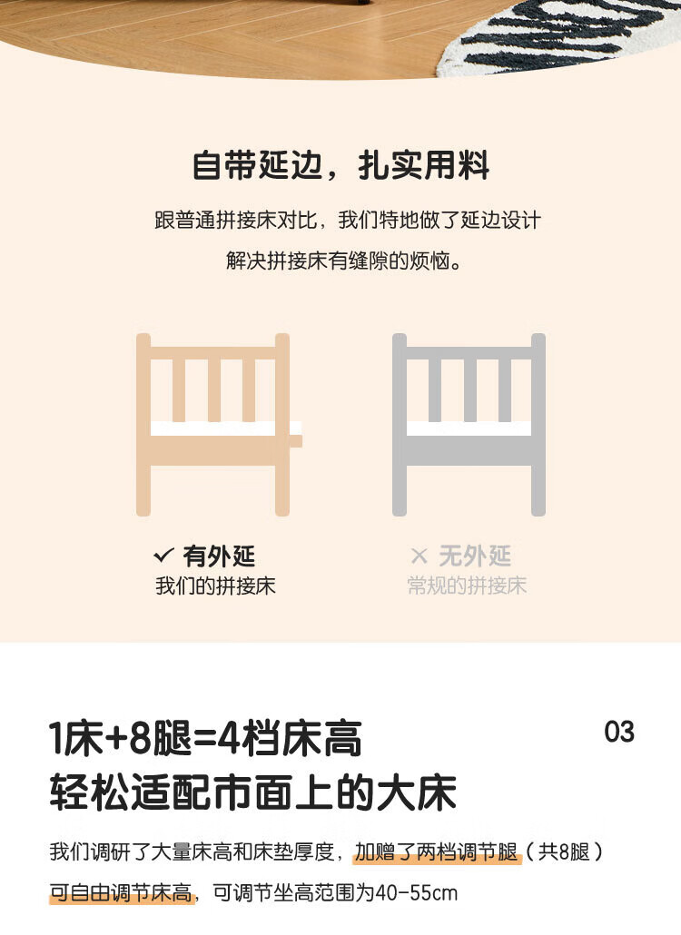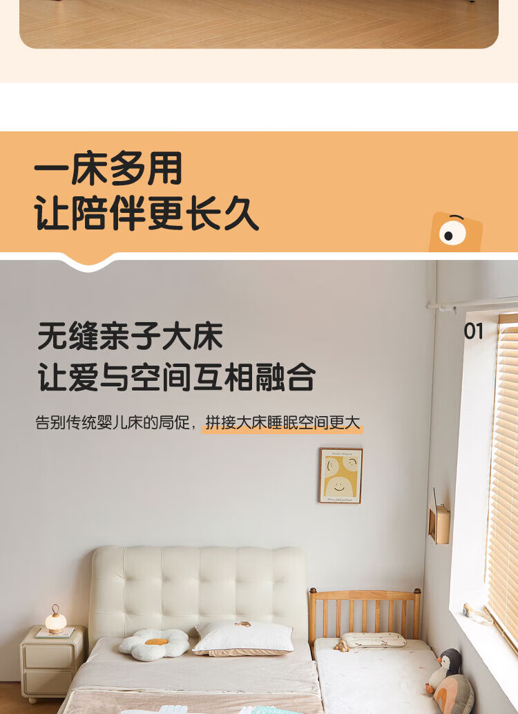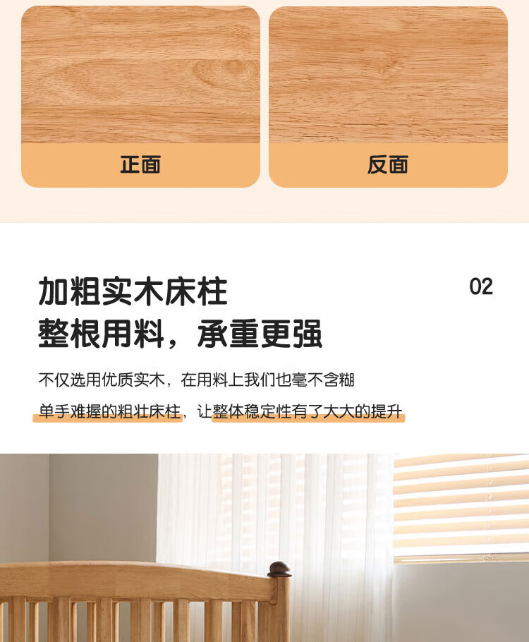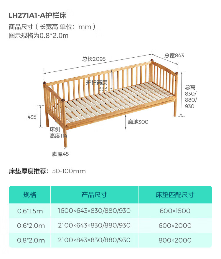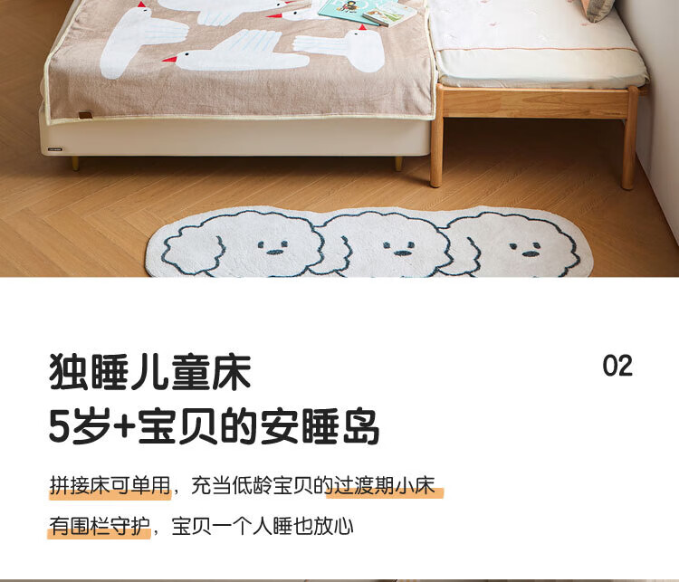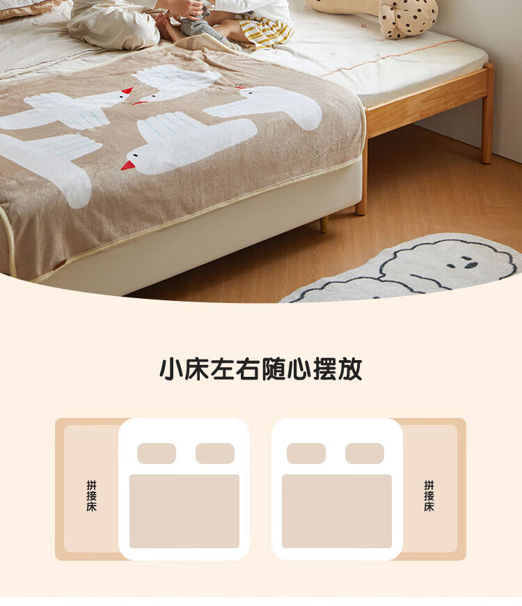 Lin's Home Furnishing 0.6*2.0m solid wood spliced bed baby with guardrails large bed side widening baby and adults can sleep LH271A1