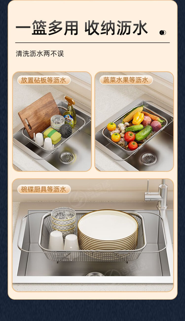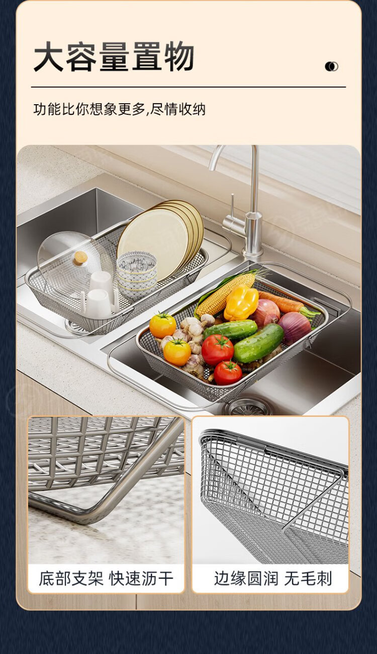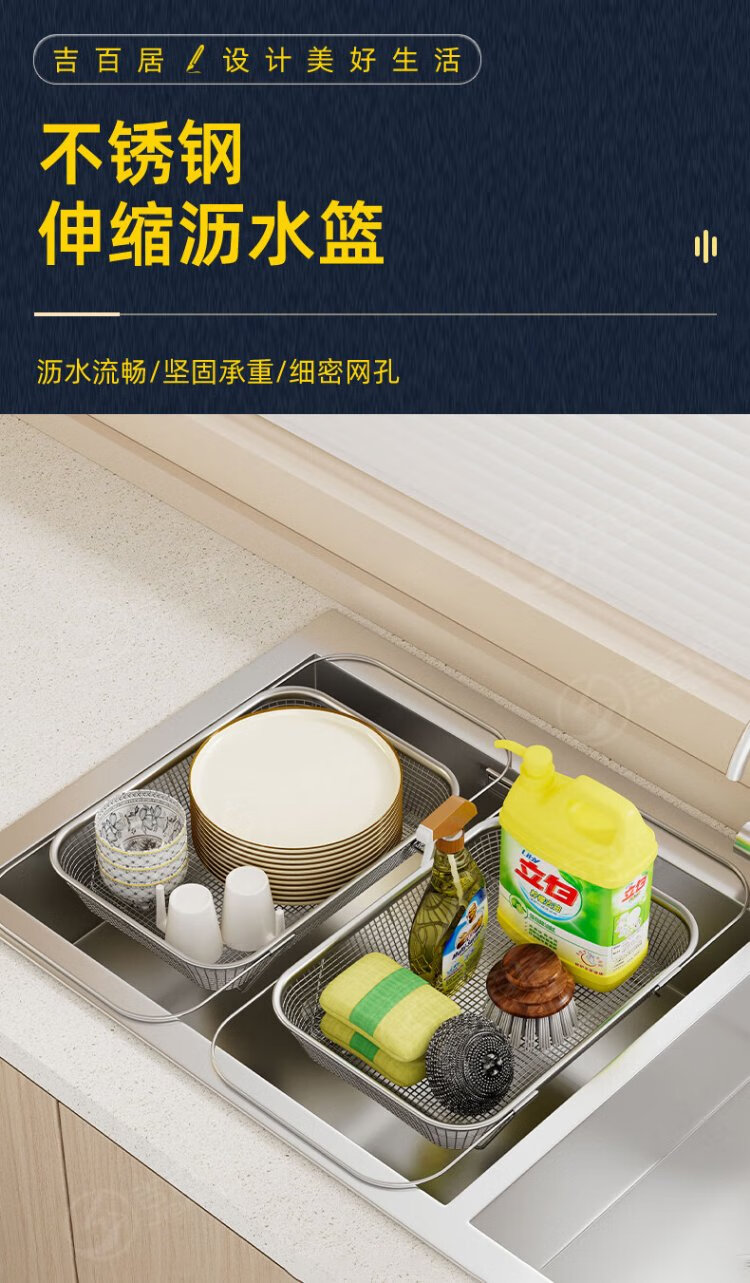 Jibaiju punch-free stainless steel retractable drain rack kitchen sink rack pool sink drain basket