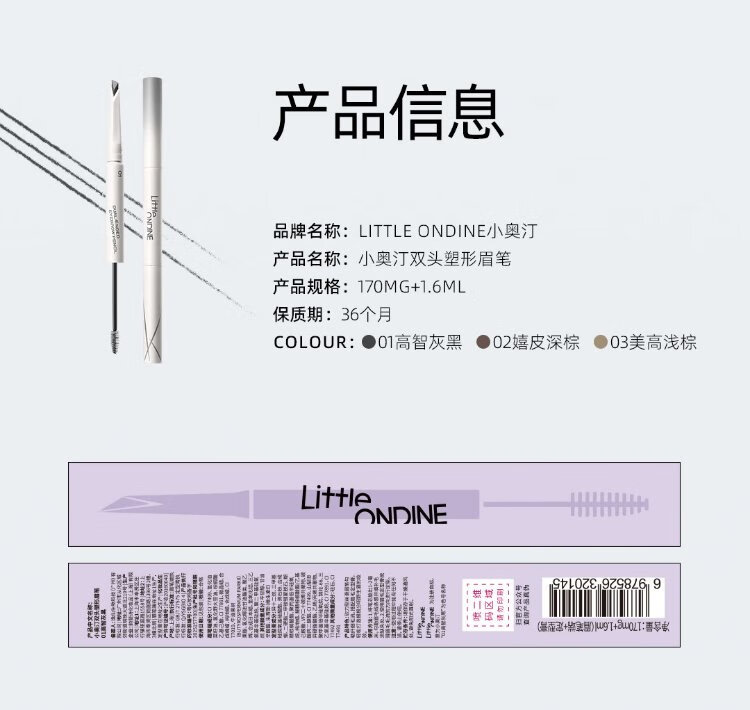 Littleondine double-ended shaping machete eyebrow pencil 01 high-intelligence gray black glue eyeliner waterproof and sweat-proof not easy to smudge Christmas gift