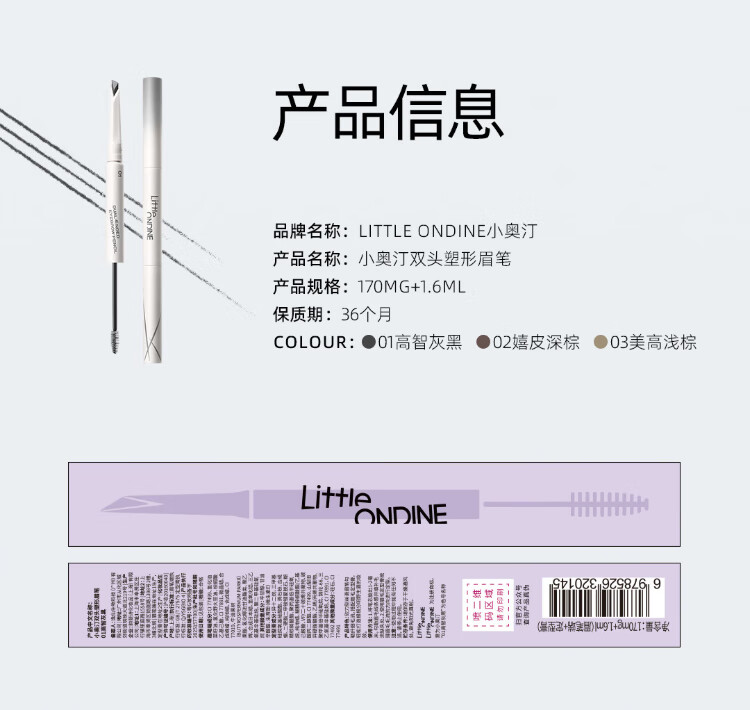 Littleondine double-ended shaping machete eyebrow pencil 03 US high light brown glue eyeliner waterproof and sweat-proof, not easy to smudge, long-lasting color