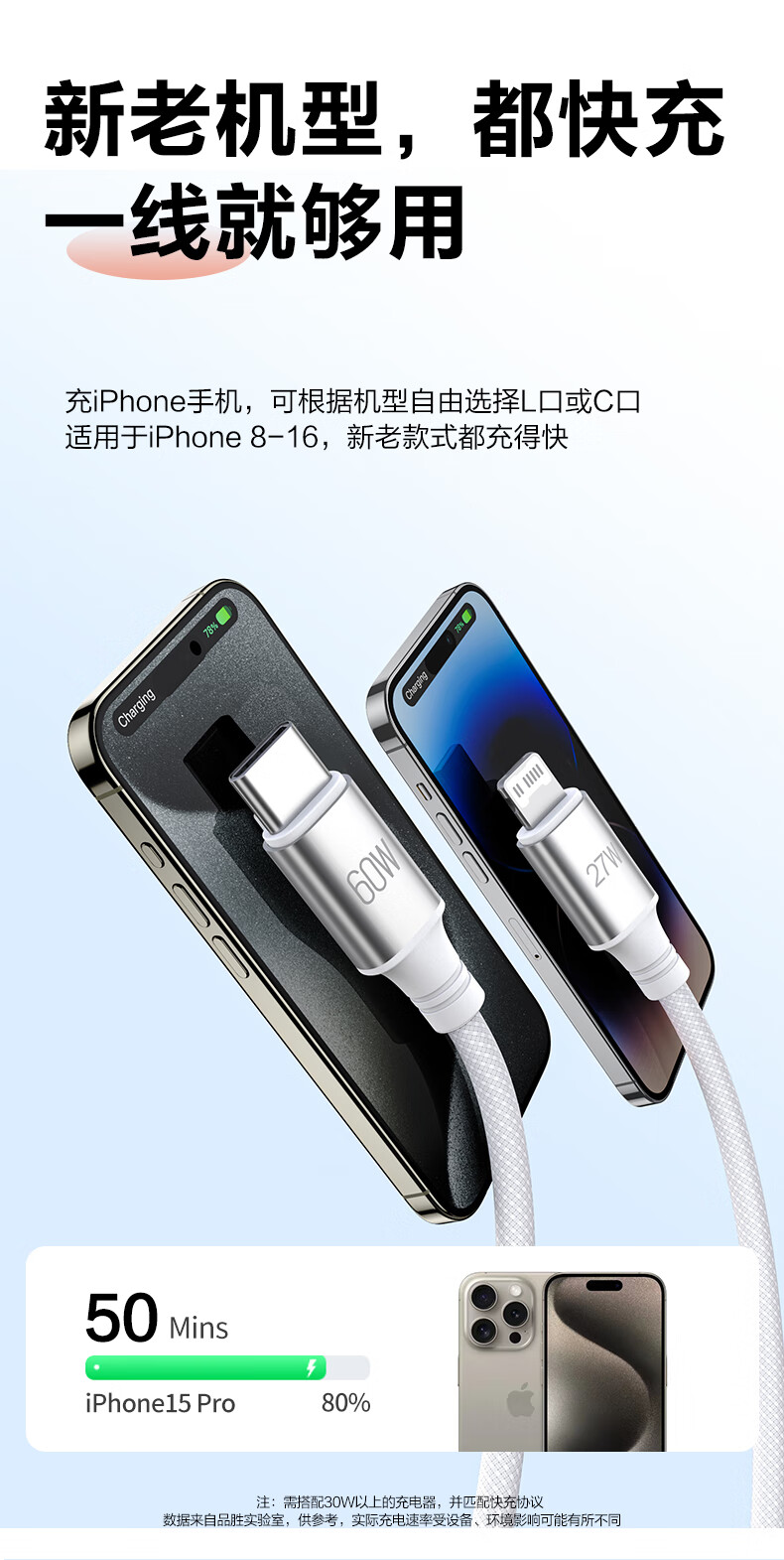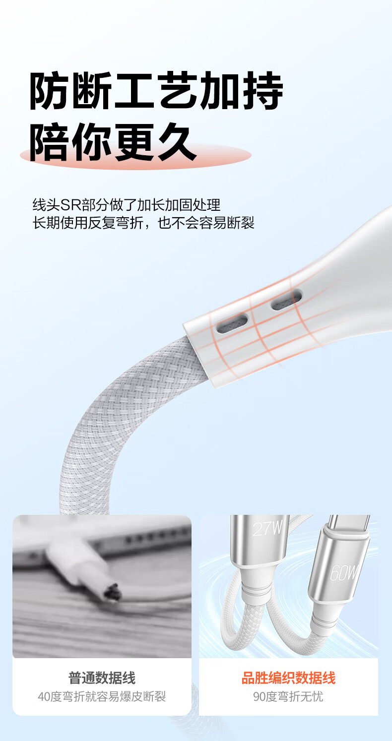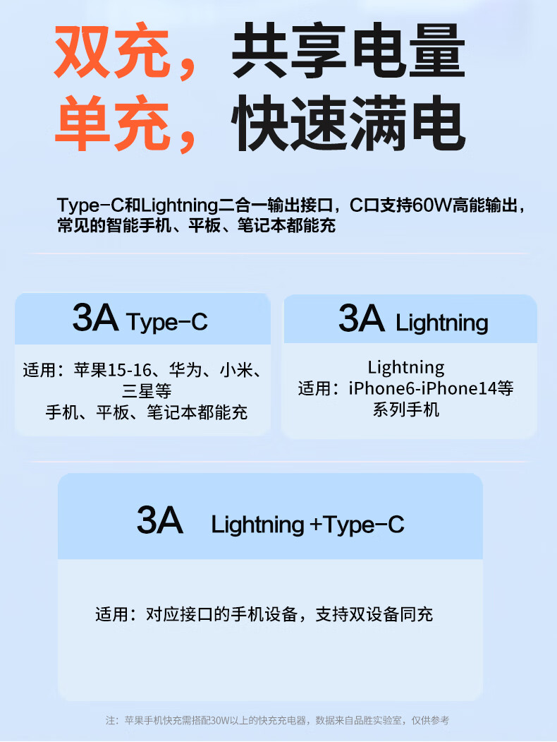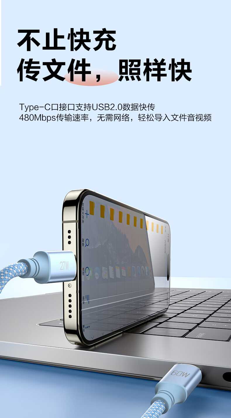 Pinsheng dual Type-C data cable two-in-one PD60W/27W charging cable fast charging one-to-two multi-head car suitable for Apple 17/16/15 mobile phone iPad Huawei Xiaomi computer