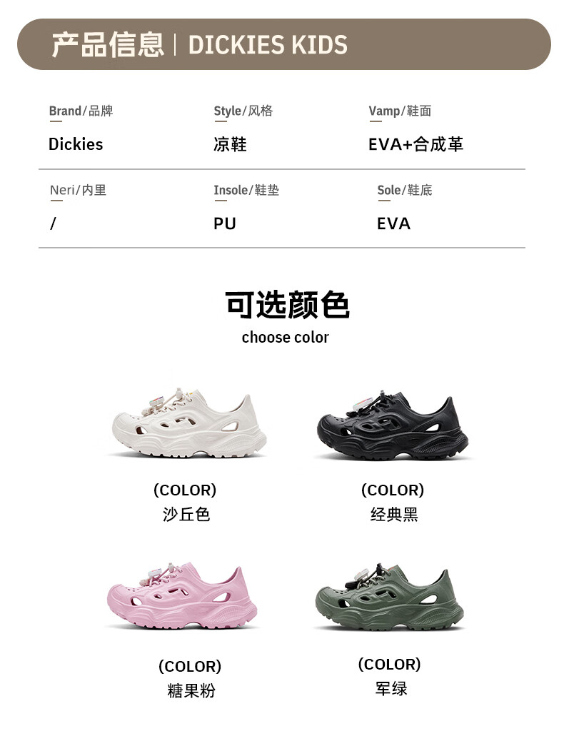 Dickies Girls' Crocs 2025 Summer New Children's Sandals Boys' Anti-Kicking River Sandals Beige 38