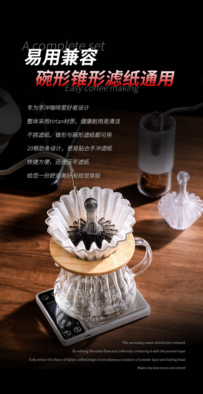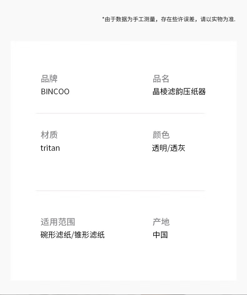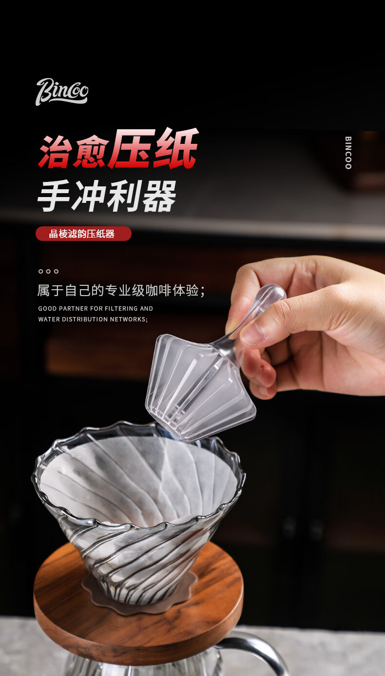 Bincoo hand-brewed coffee V60 conical origami filter cake filter uses paper press heat-resistant Tritan resin