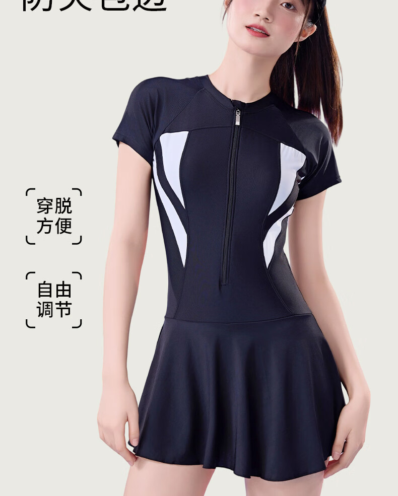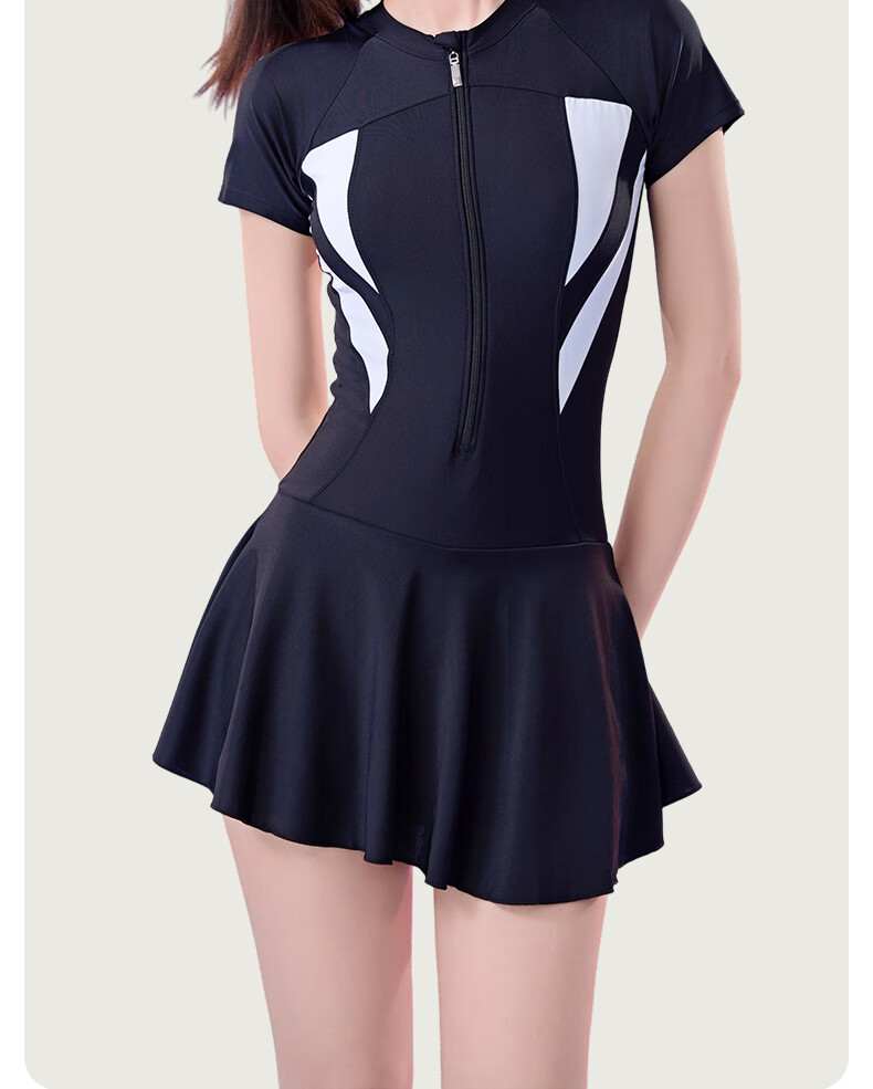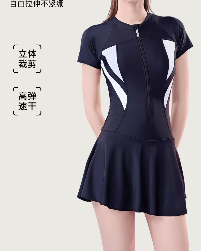 LangSha swimsuit for women, one-piece dress, conservative swimsuit, quick-drying, flesh-covering, slimming, sports hot springs, large size swimsuit