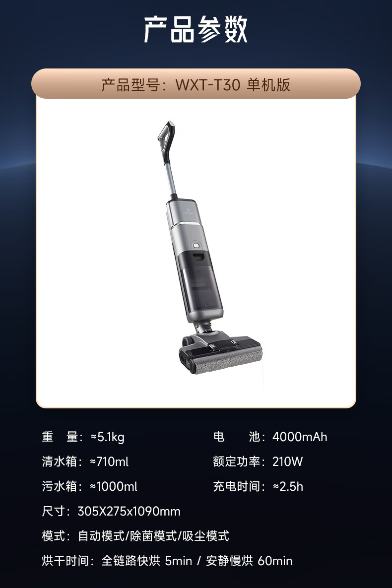 Westinghouse floor scrubber T30 flat-laying suction and mopping all-in-one vacuum cleaner automatic cleaning wireless household high-temperature hot water drying sweeper WXT-T30 (stand-alone version)