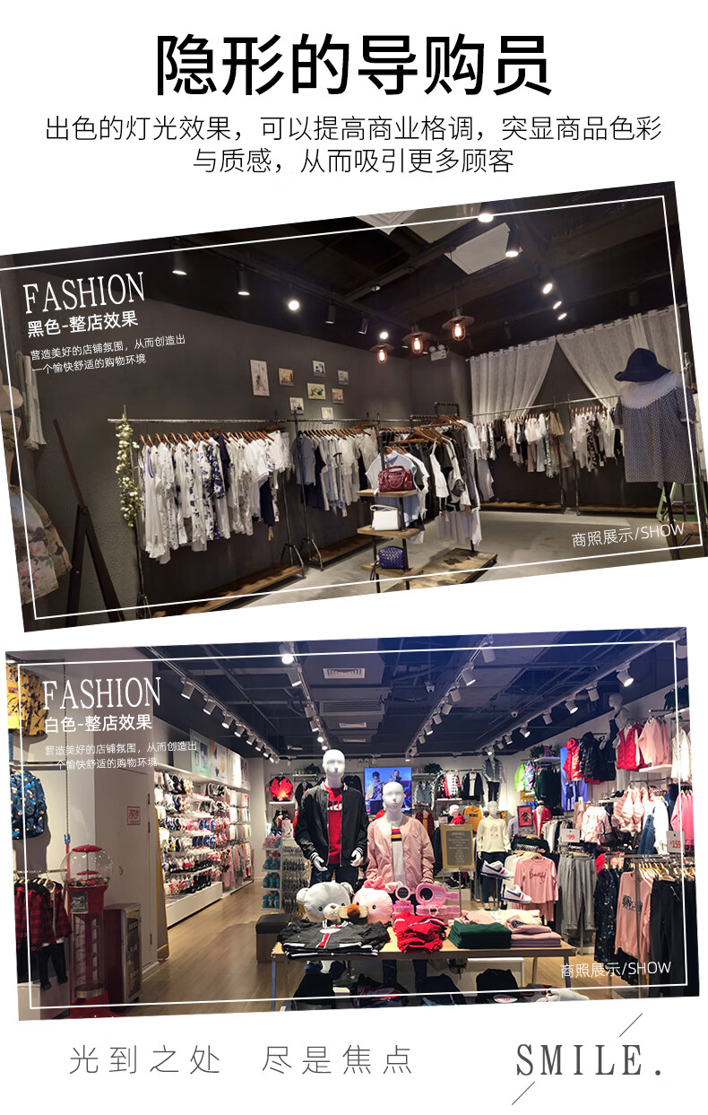 CANMEIJIA LED track light COB spotlight commercial clothing store exposed super bright exhibition hall background wall rail light ceiling ceiling light 30W-black-warm light*3