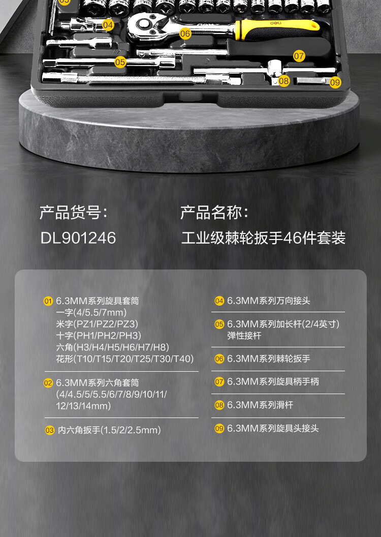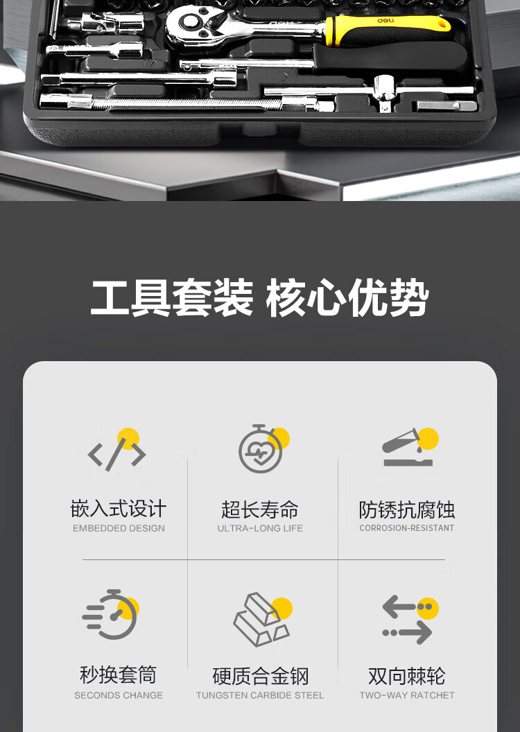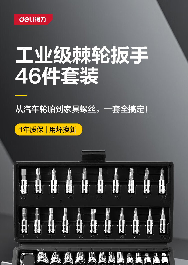 Deli socket wrench complete ratchet wrench set 46-piece torque wrench repair tool set