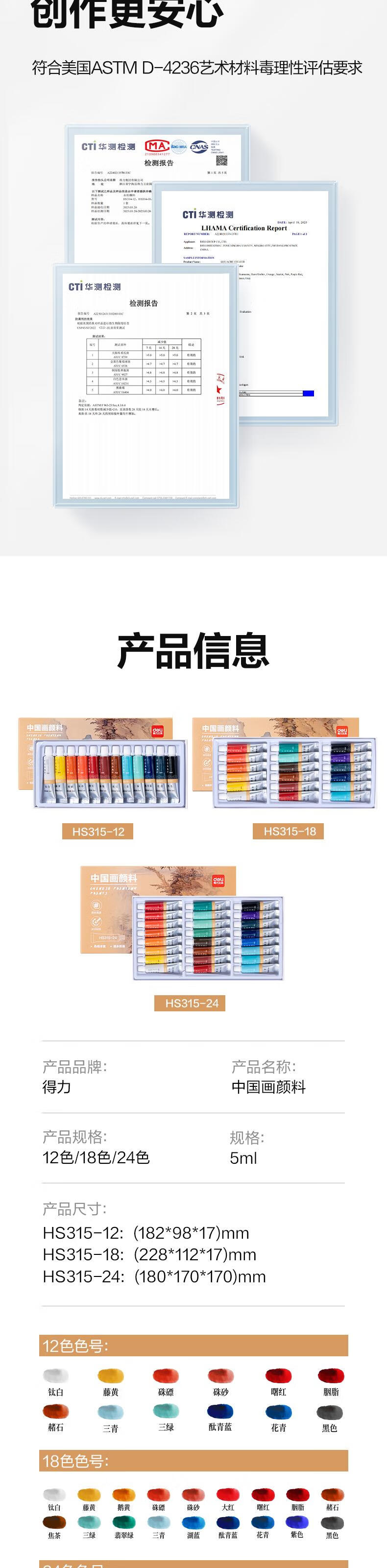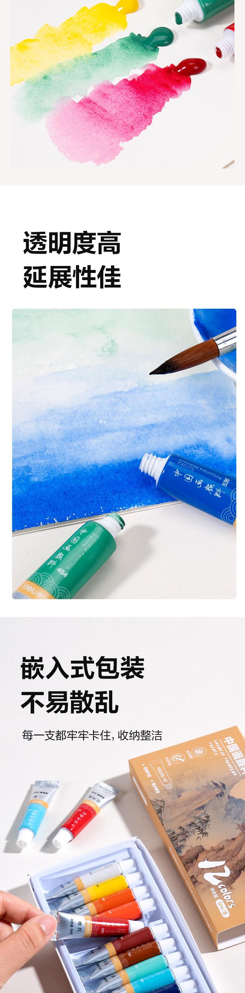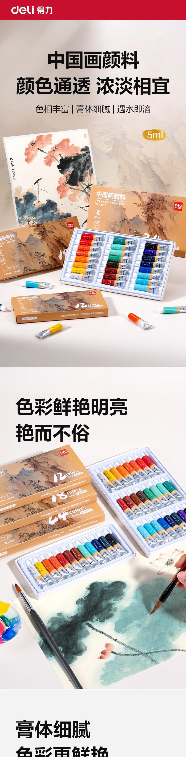 Deli (deli) 24 colors 5ml Chinese painting pigment ink landscape painting painting four treasures painting color entry set exam gift HS315-24
