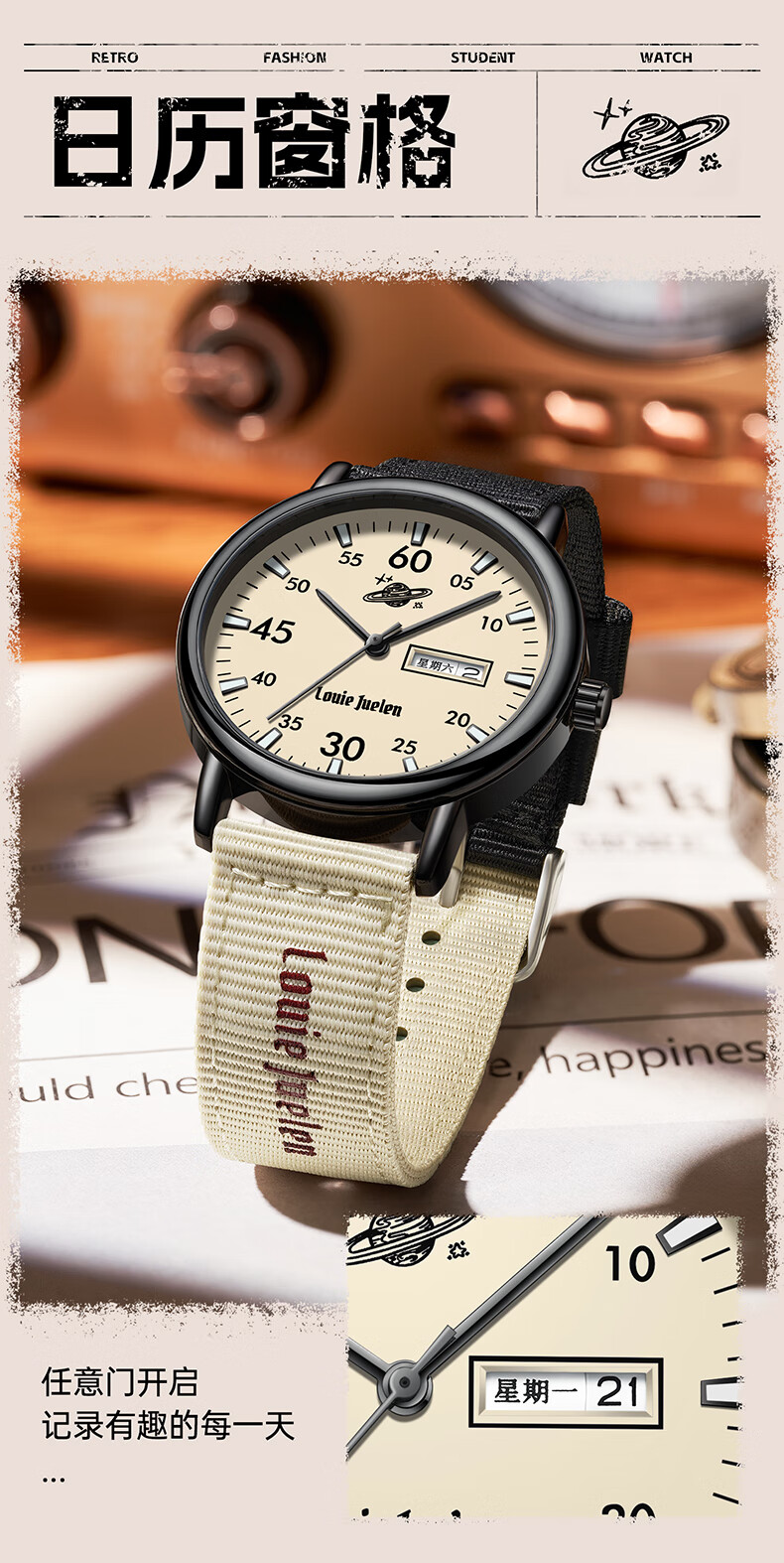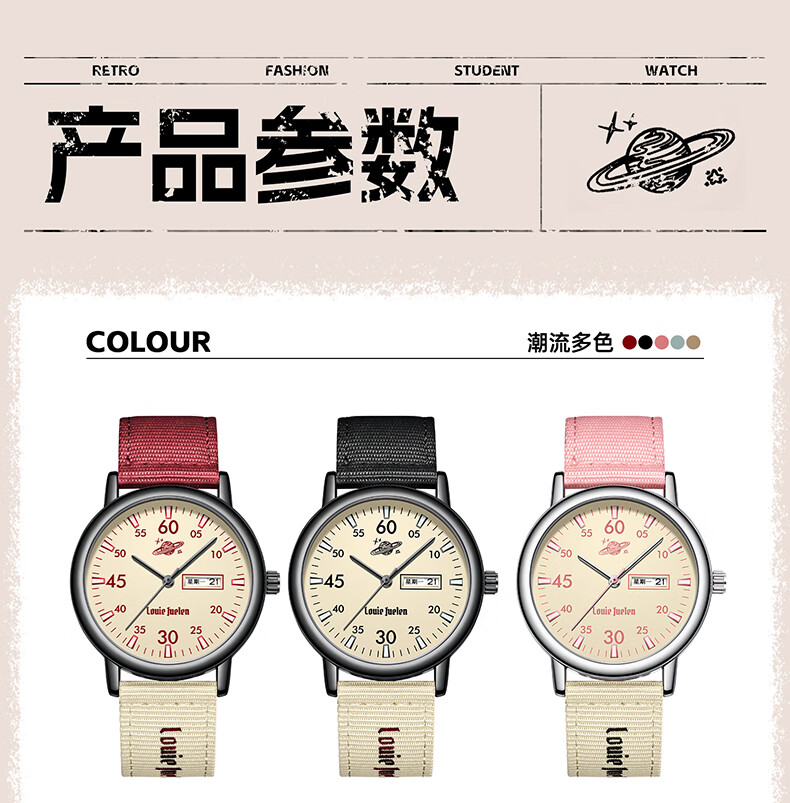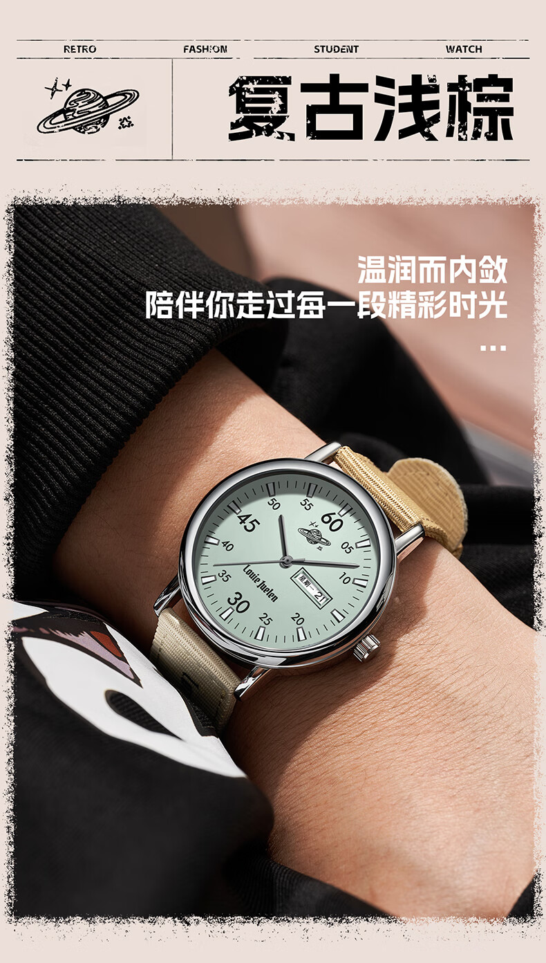 Louis Juerun student watch for men and women, exam-specific civil servant junior and high school retro silent luminous mechanical quartz watch