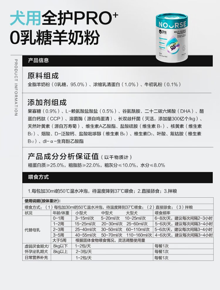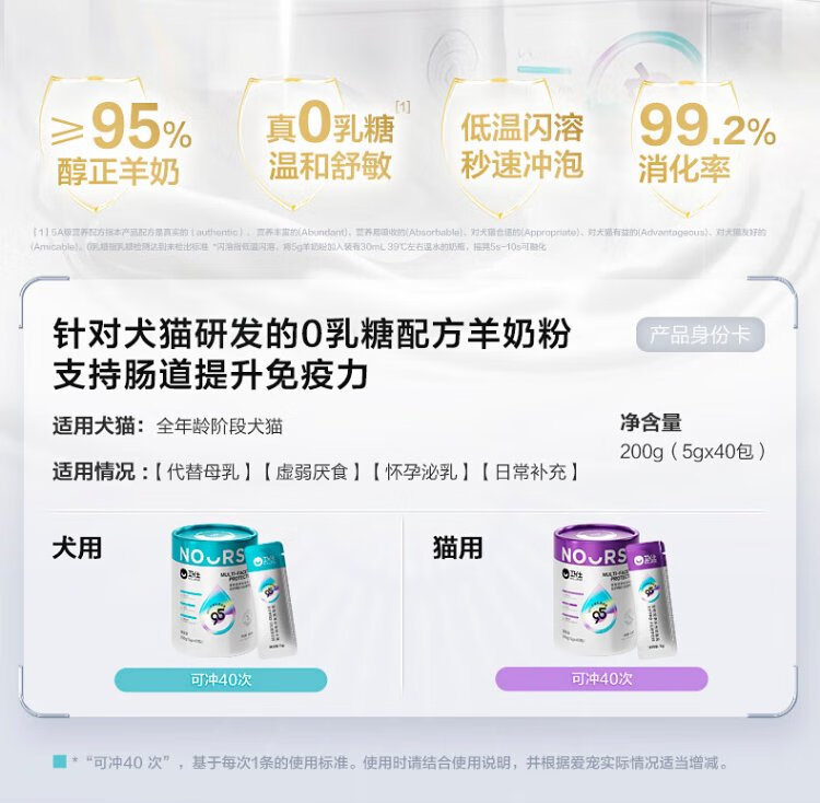 Weishi's new dog-friendly 0-lactose goat milk powder 200g (5g*40 packs) for newborn puppies, adult dogs and pets