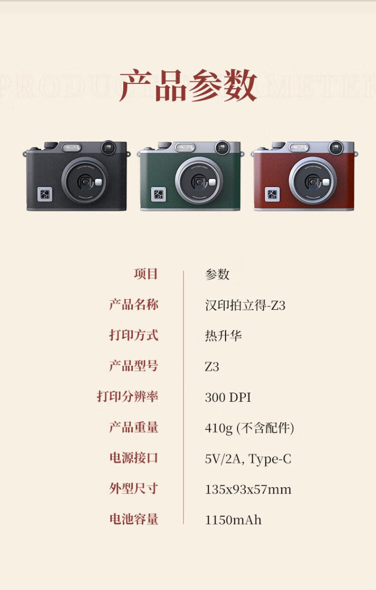 Hanyin Z3 instant camera red mini portable mobile phone high-definition photo printer directly prints photos for home students, children and ladies digital camera gift