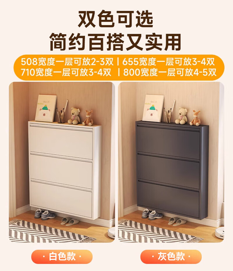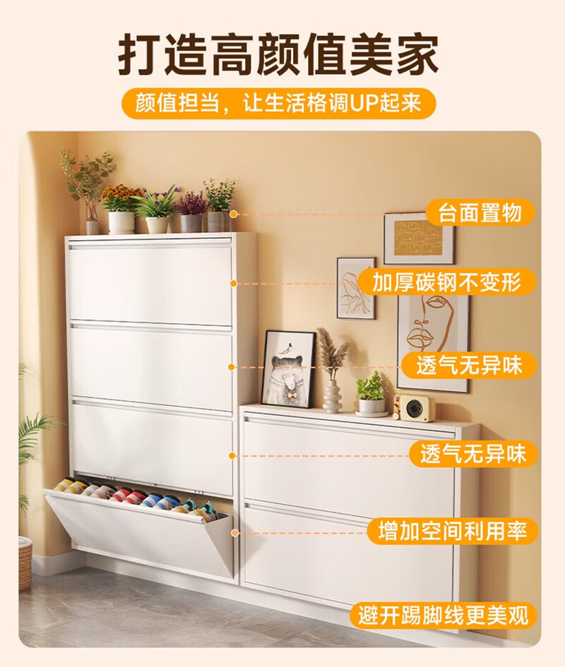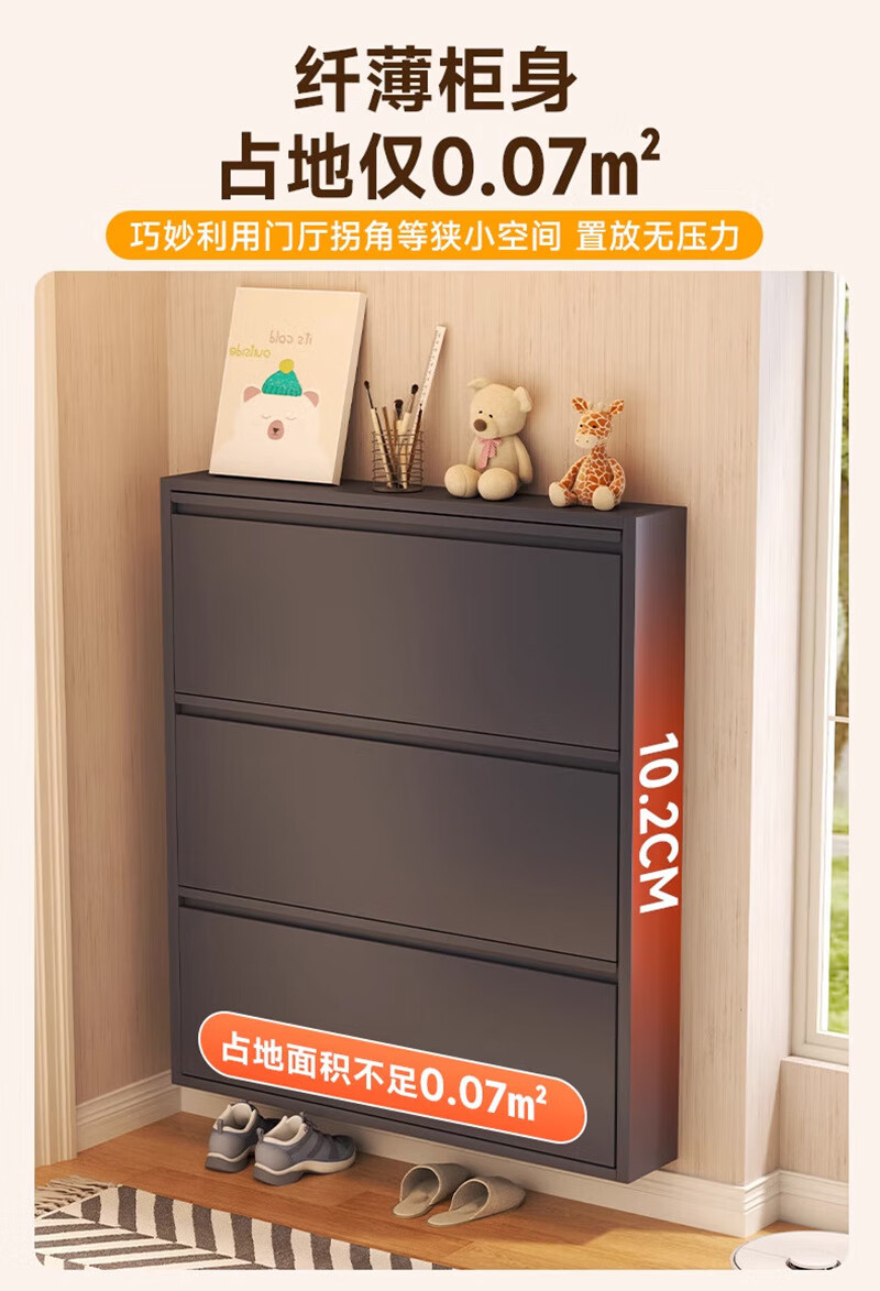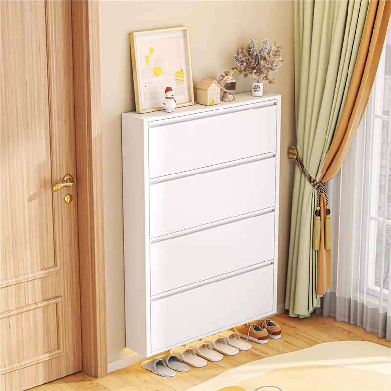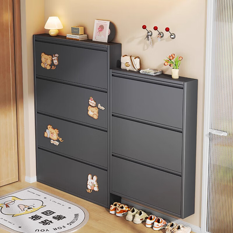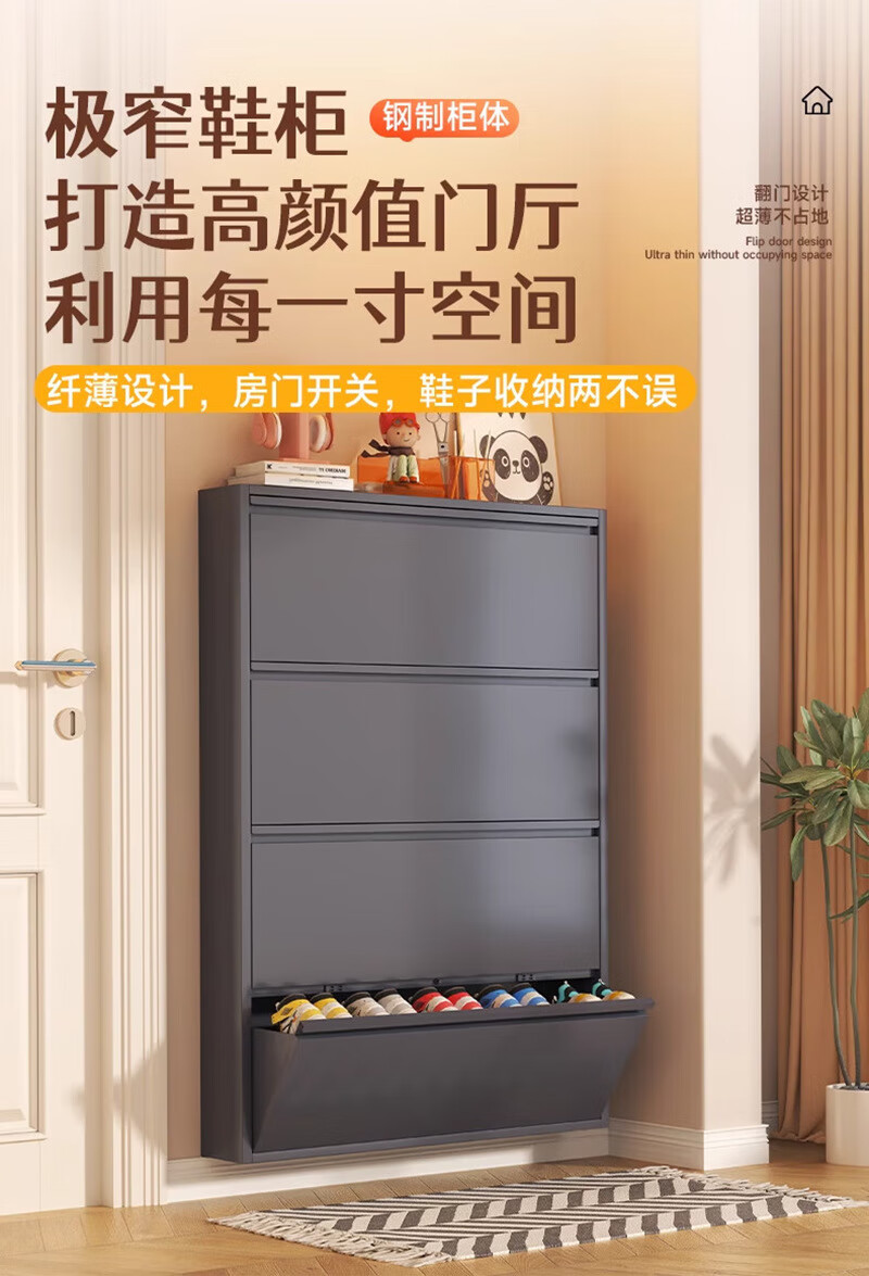 NAIGAO ultra-thin steel tipping bucket metal shoe cabinet wall-mounted suspended small apartment home simple narrow-side doorway multi-layer entrance cabinet