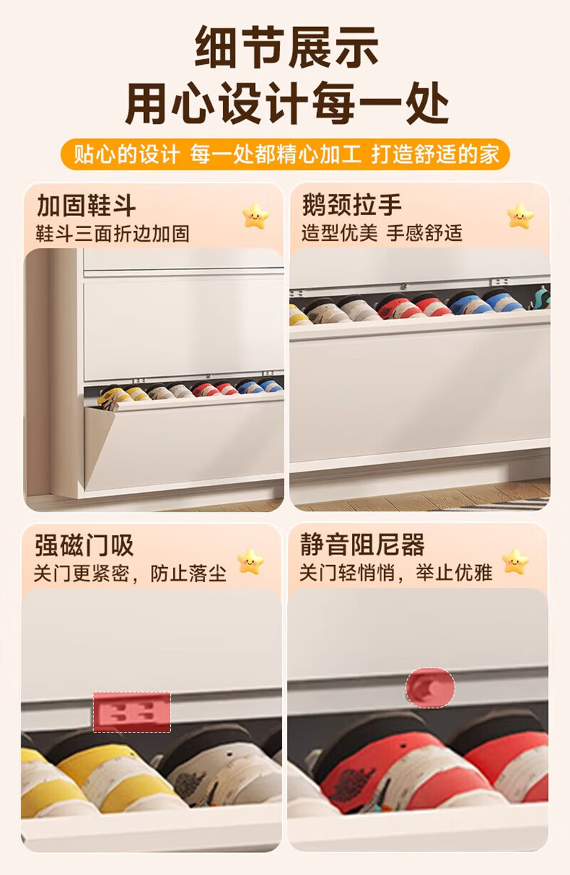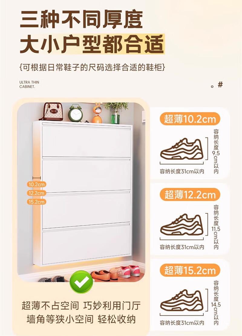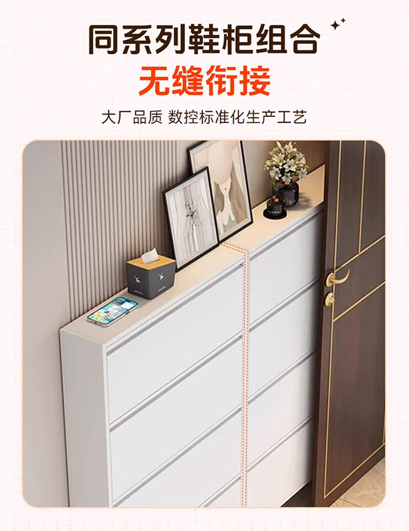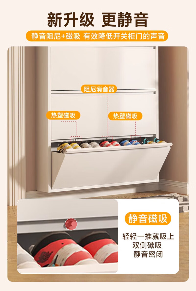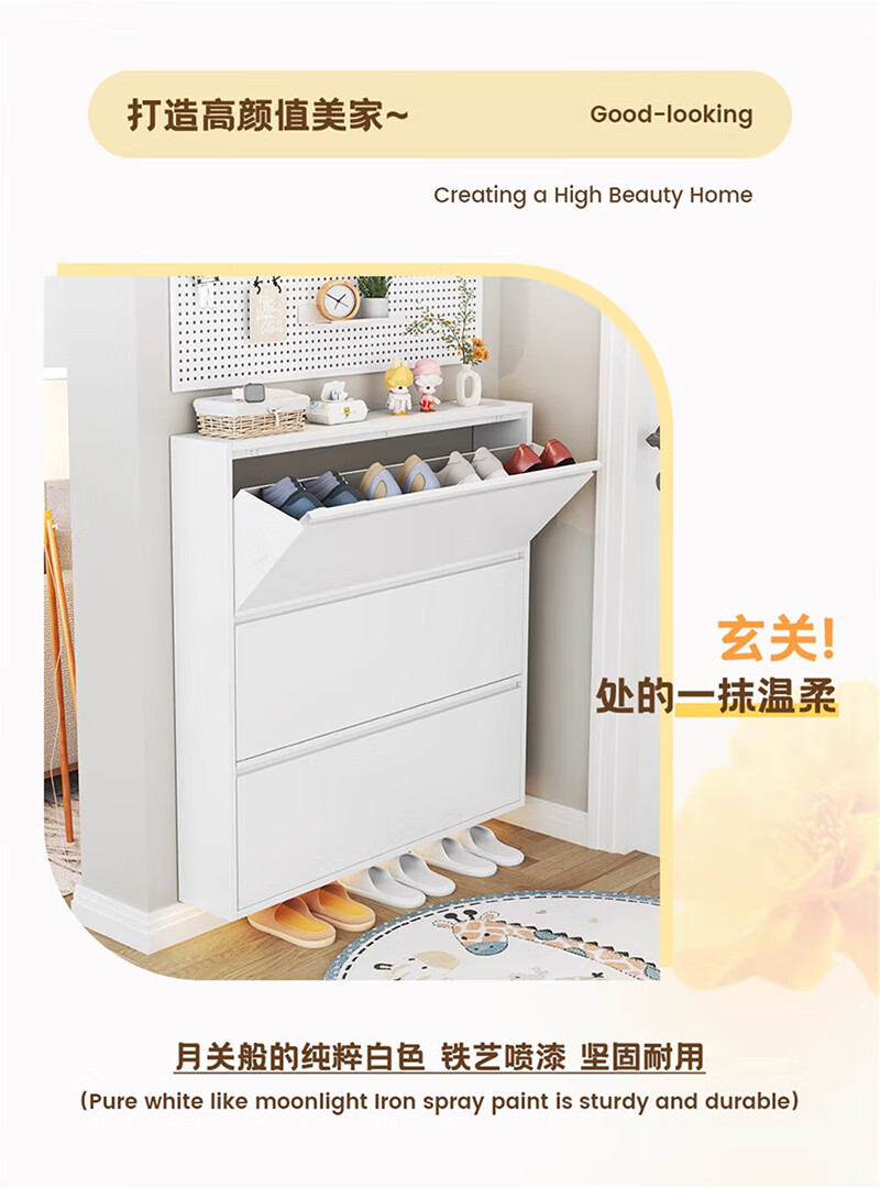 NAIGAO ultra-thin steel tipping bucket metal shoe cabinet wall-mounted suspended small apartment home simple narrow-side doorway multi-layer entrance cabinet