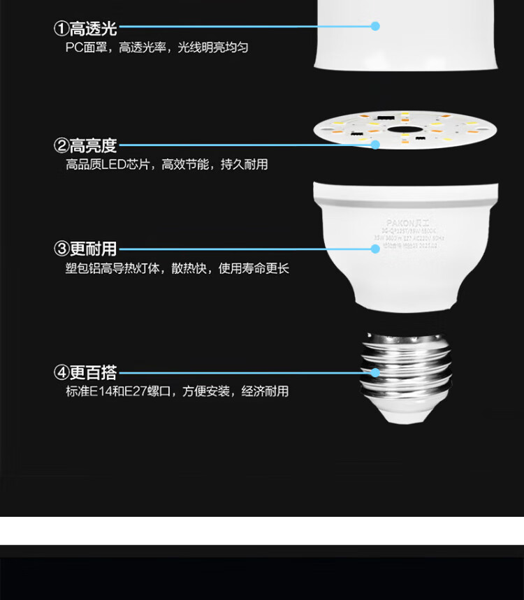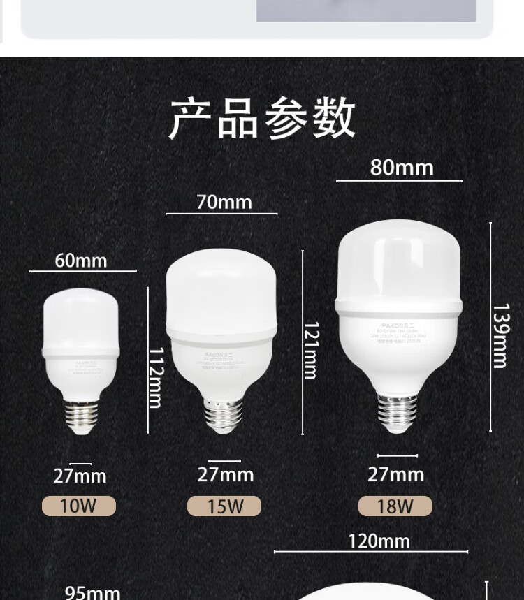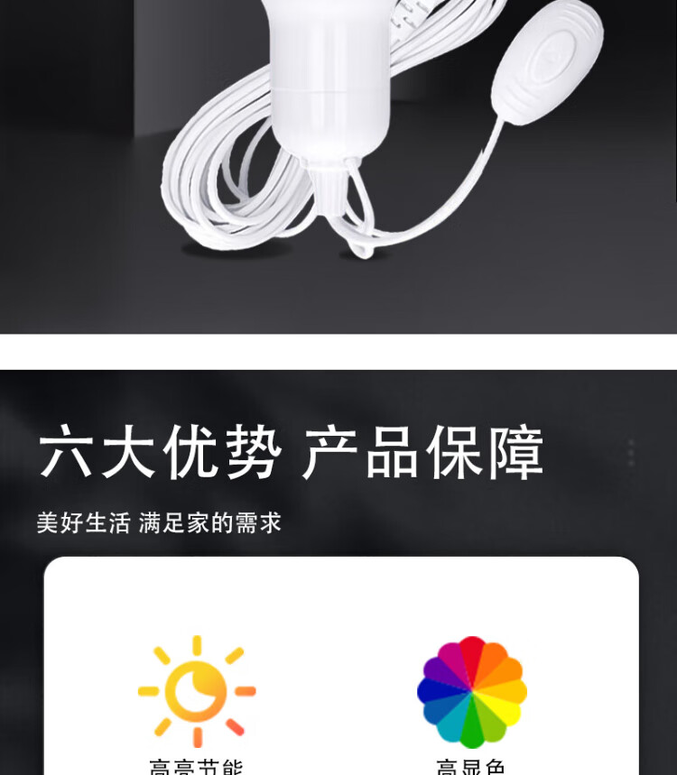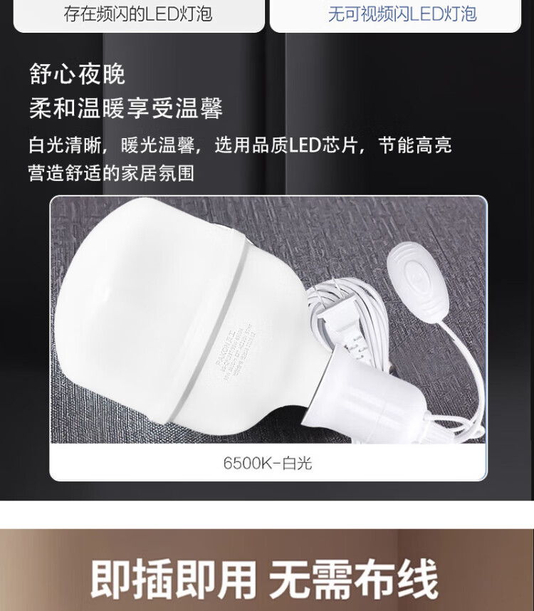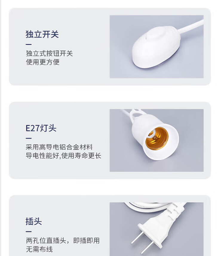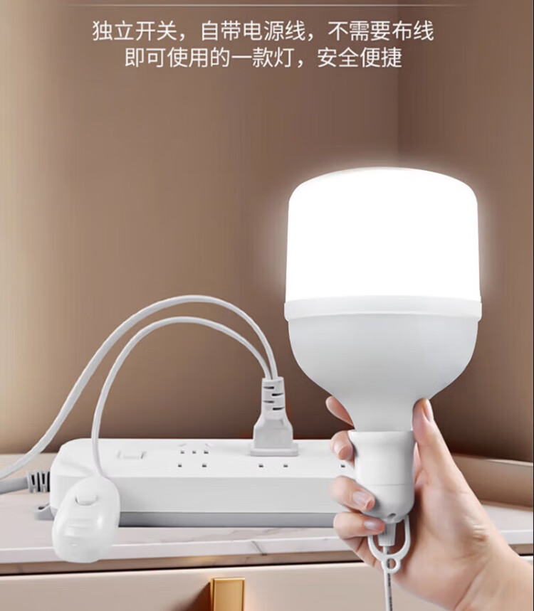 Beigong wired LED light bulb E27 screw suspension plug-in lamp stall home balcony switch plug light 10W cylindrical bulb + 4 meters wire
