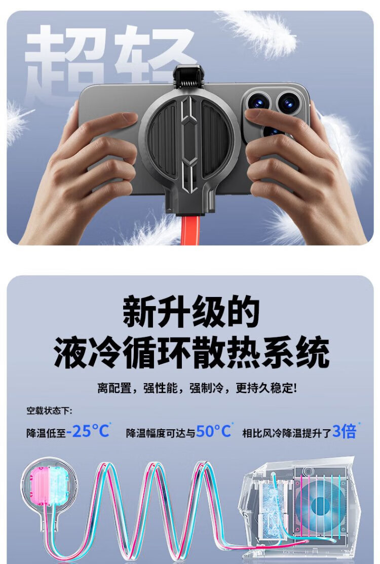 Maitai liquid-cooled magnetic mobile phone radiator AI intelligent temperature adjustment live broadcast dedicated ultra-quiet semiconductor refrigeration cooling artifact water cooling suitable for Black Shark 4pro tablet ipad Apple