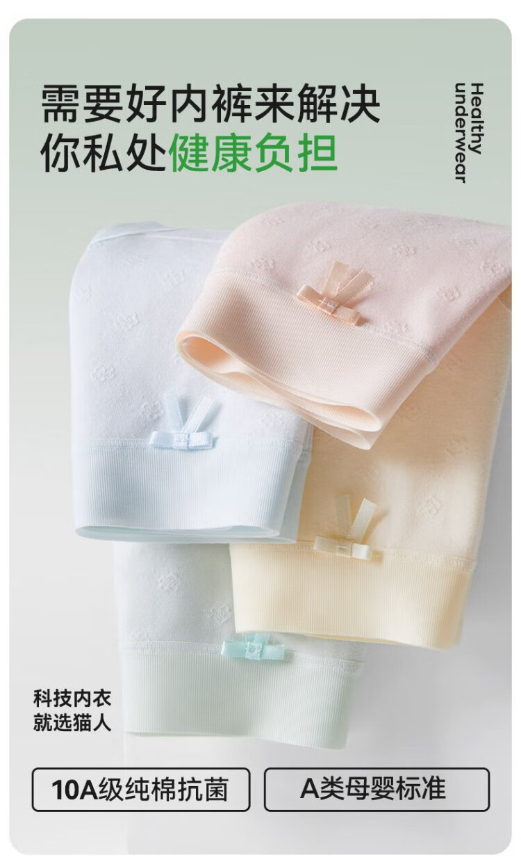 Catman Category A baby cotton women's underwear women's pure cotton 100% cotton antibacterial bottom crotch mid-waist large size seamless briefs