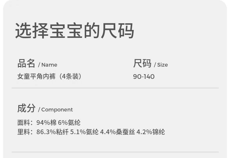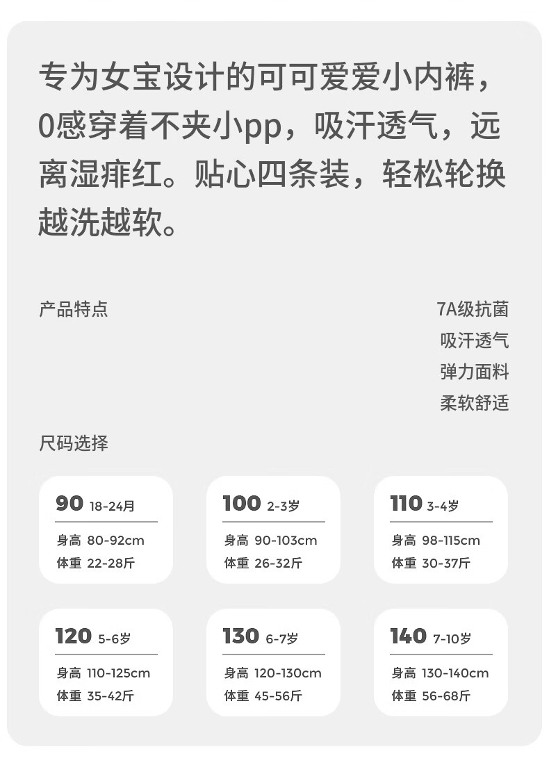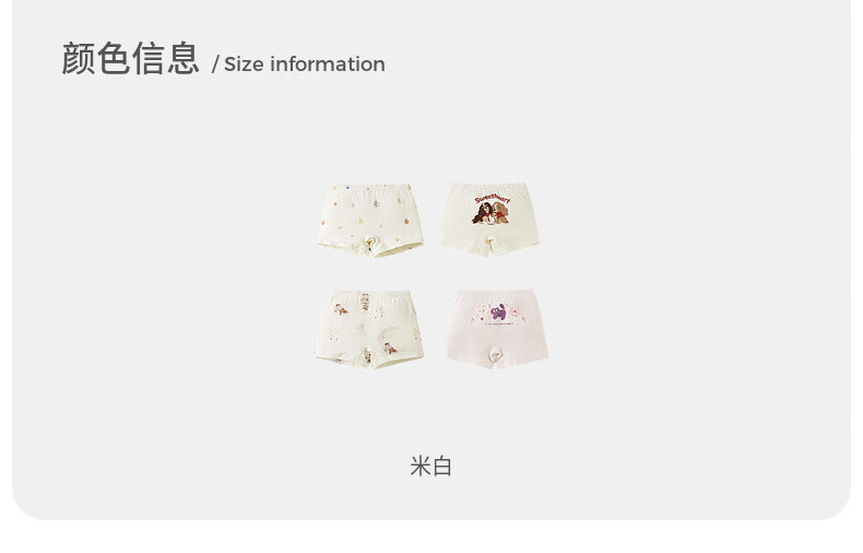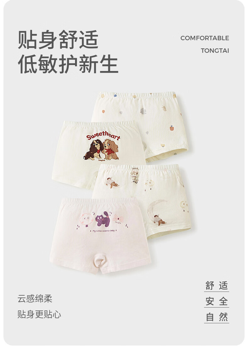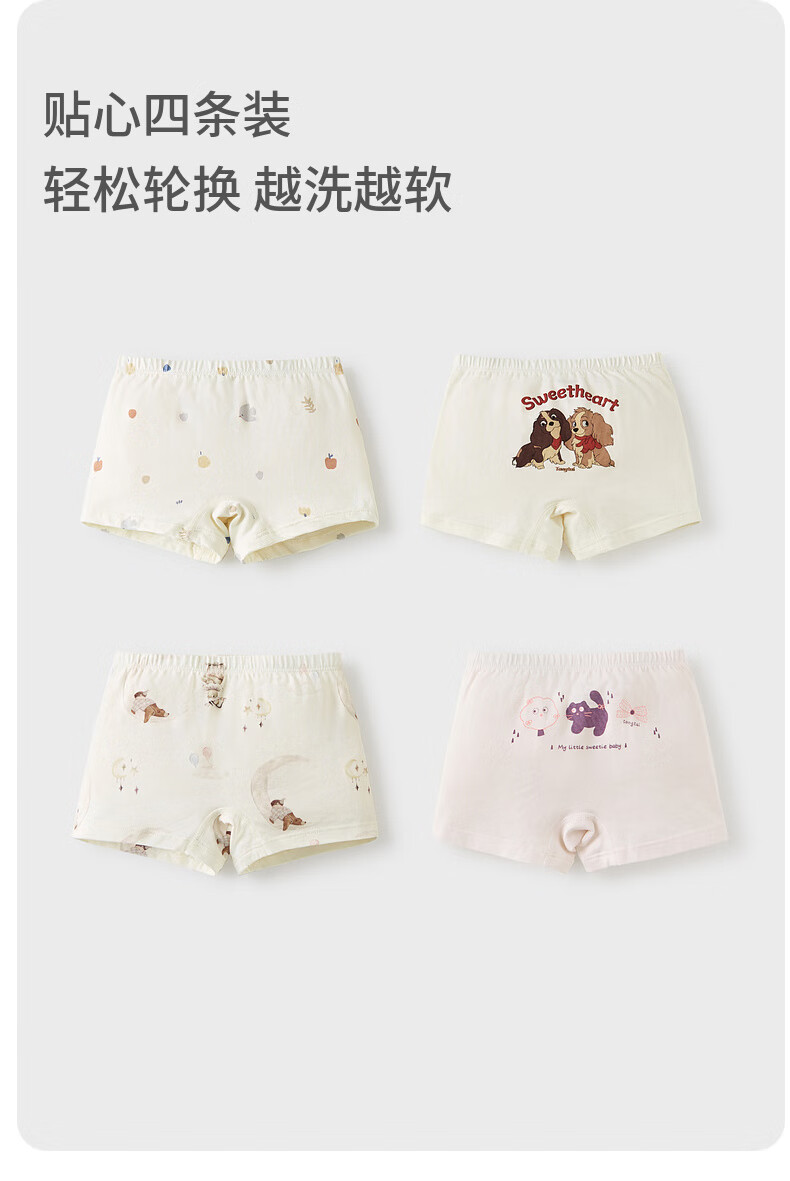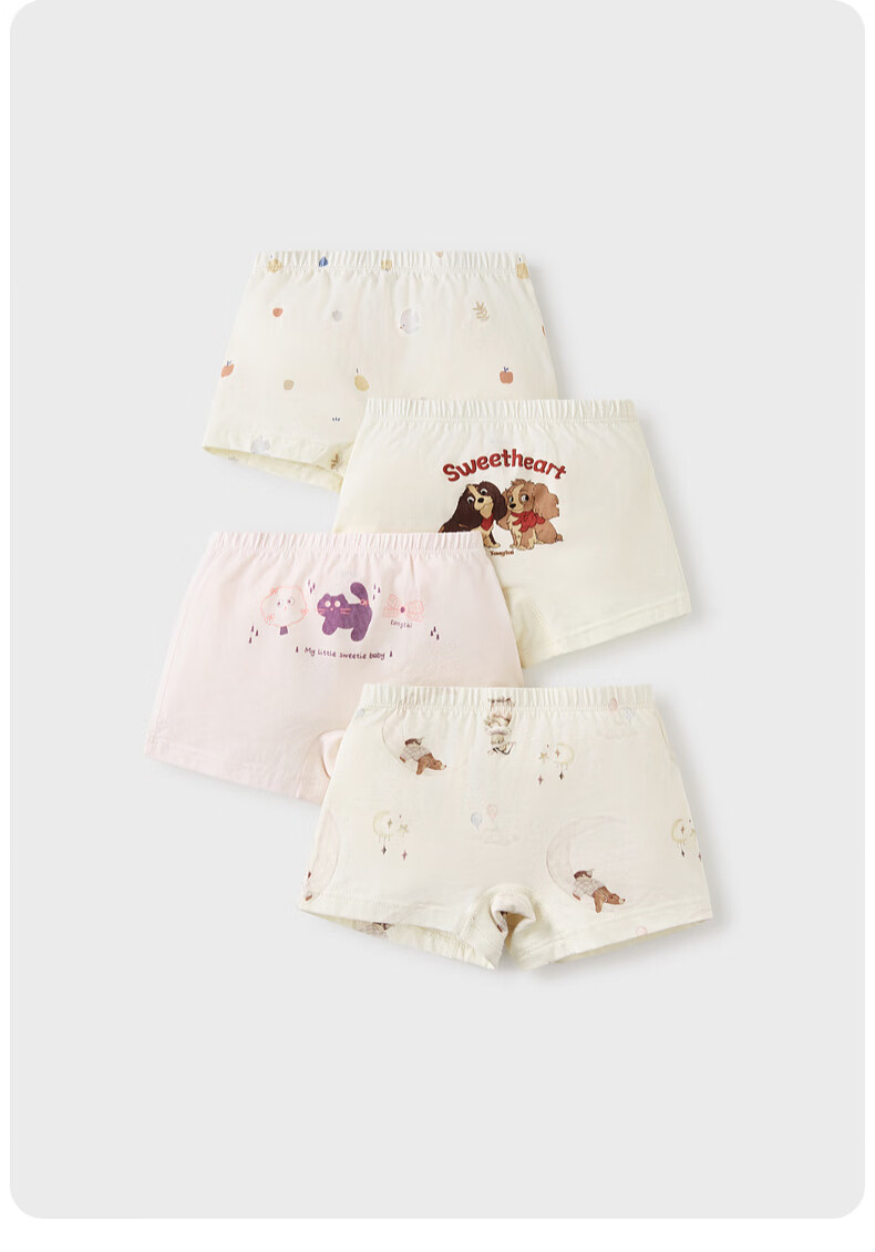 Tongtai (TONGTAI) baby girl underwear, girls' shorts, children's breathable boxer briefs, medium and large children's boxer briefs, 4 pack, off-white 110cm