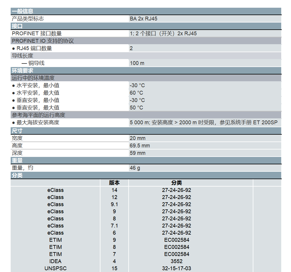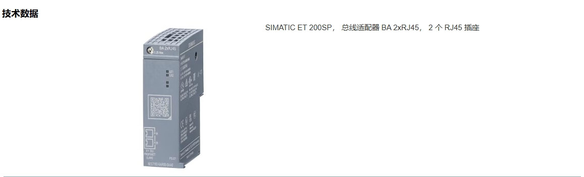 Siemens 6ES71936AR000AA0 Contrôleur de module PLC SIMATIC ET 200SP, adaptateur de bus BA 2xRJ45 2 prises RJ45