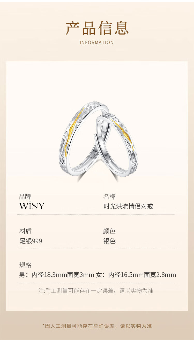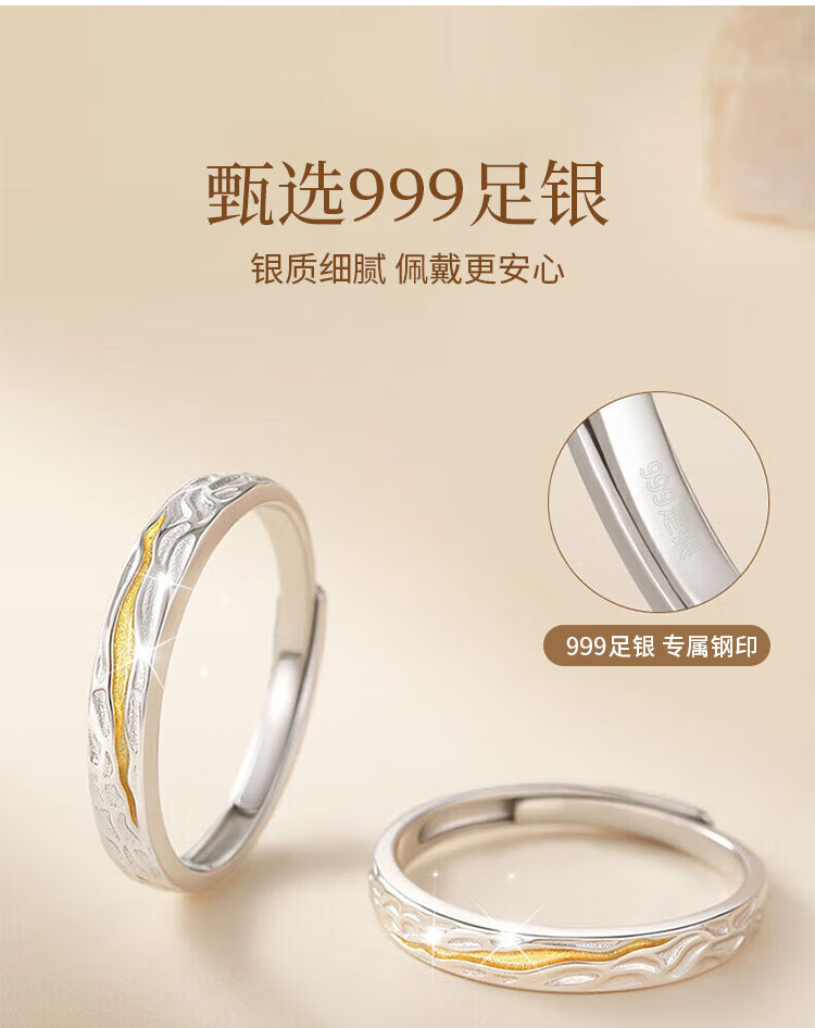 The only (Winy) 999 sterling silver couple ring pair, a pair of practical engagement rings, men's and women's birthday gift jewelry