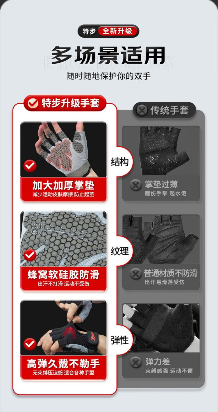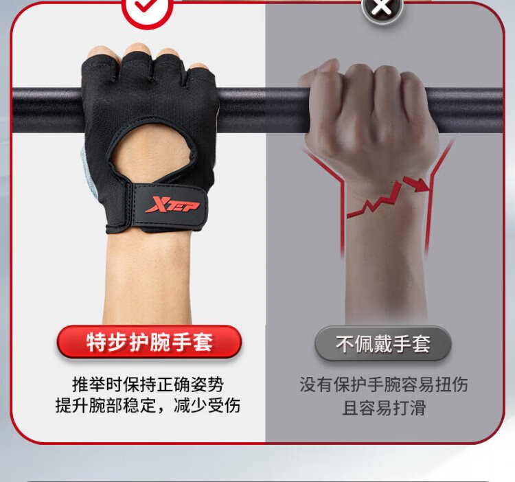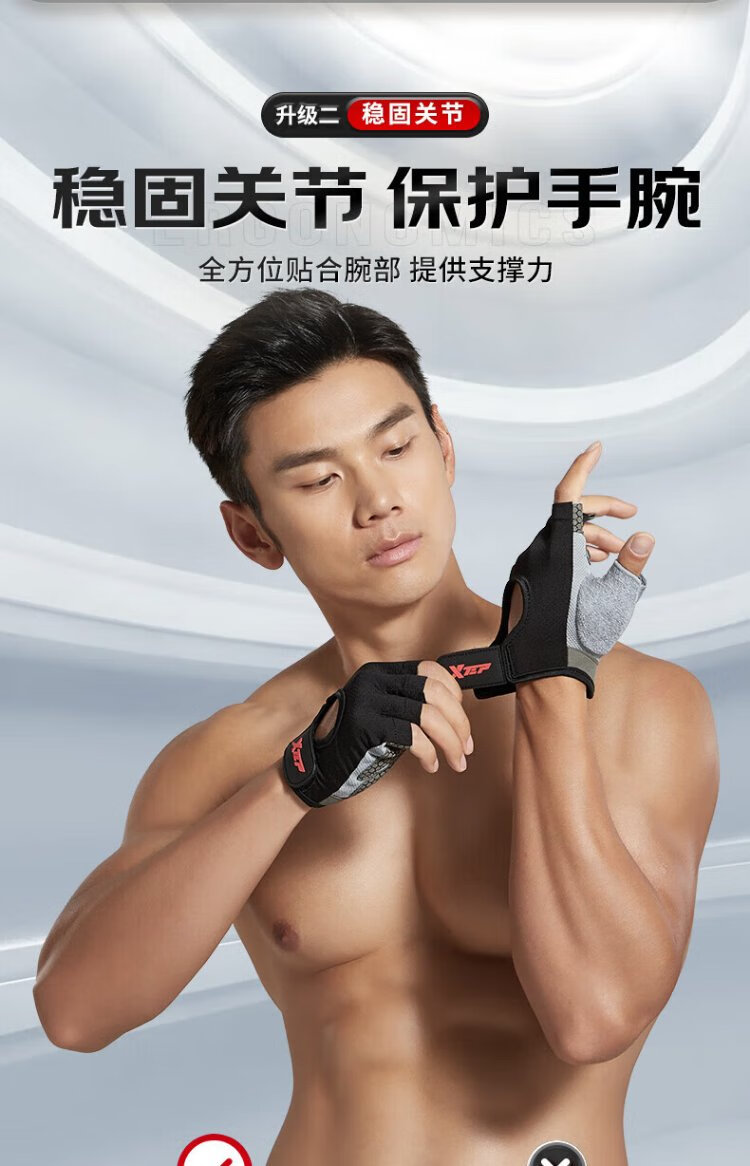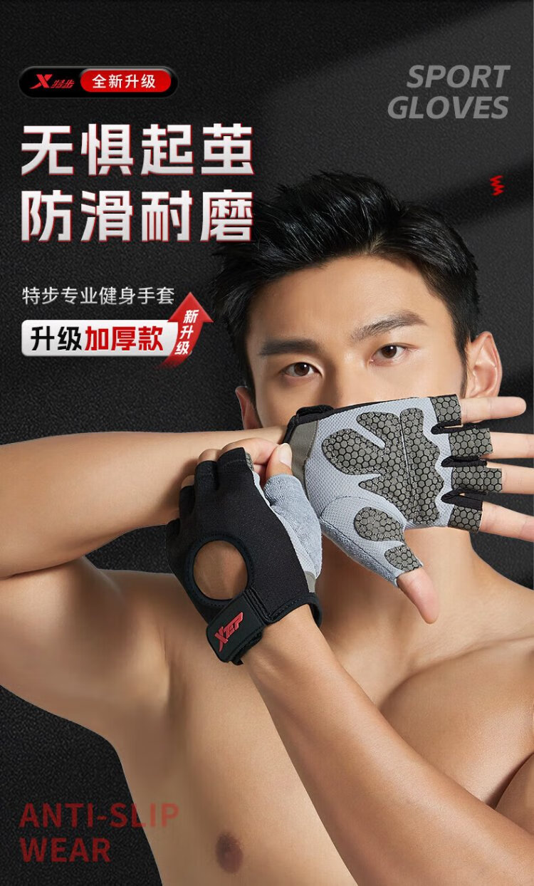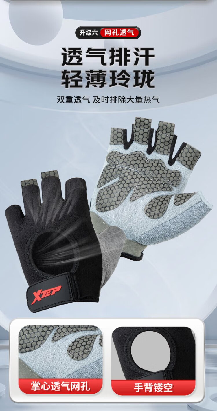 XTEP fitness gloves cycling men's sports pull-ups horizontal bar anti-slip bicycle mountaineering half-finger dumbbell anti-cocoon XL