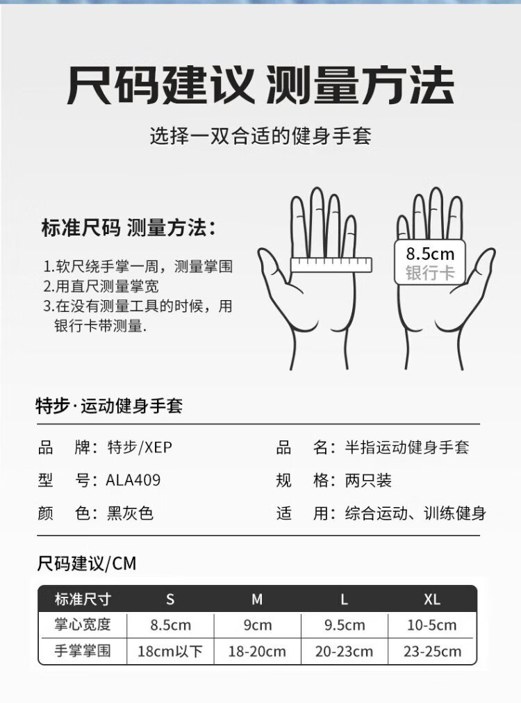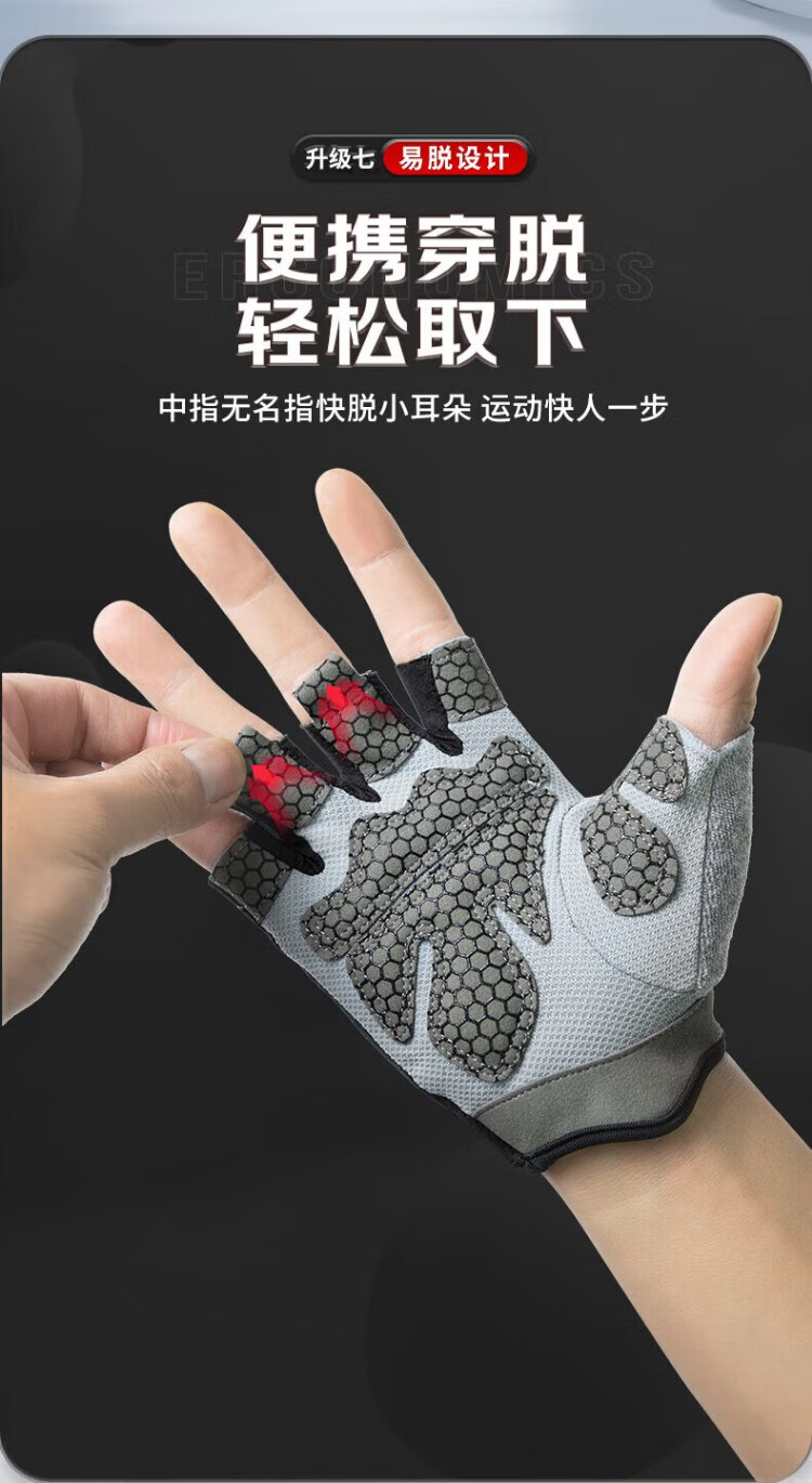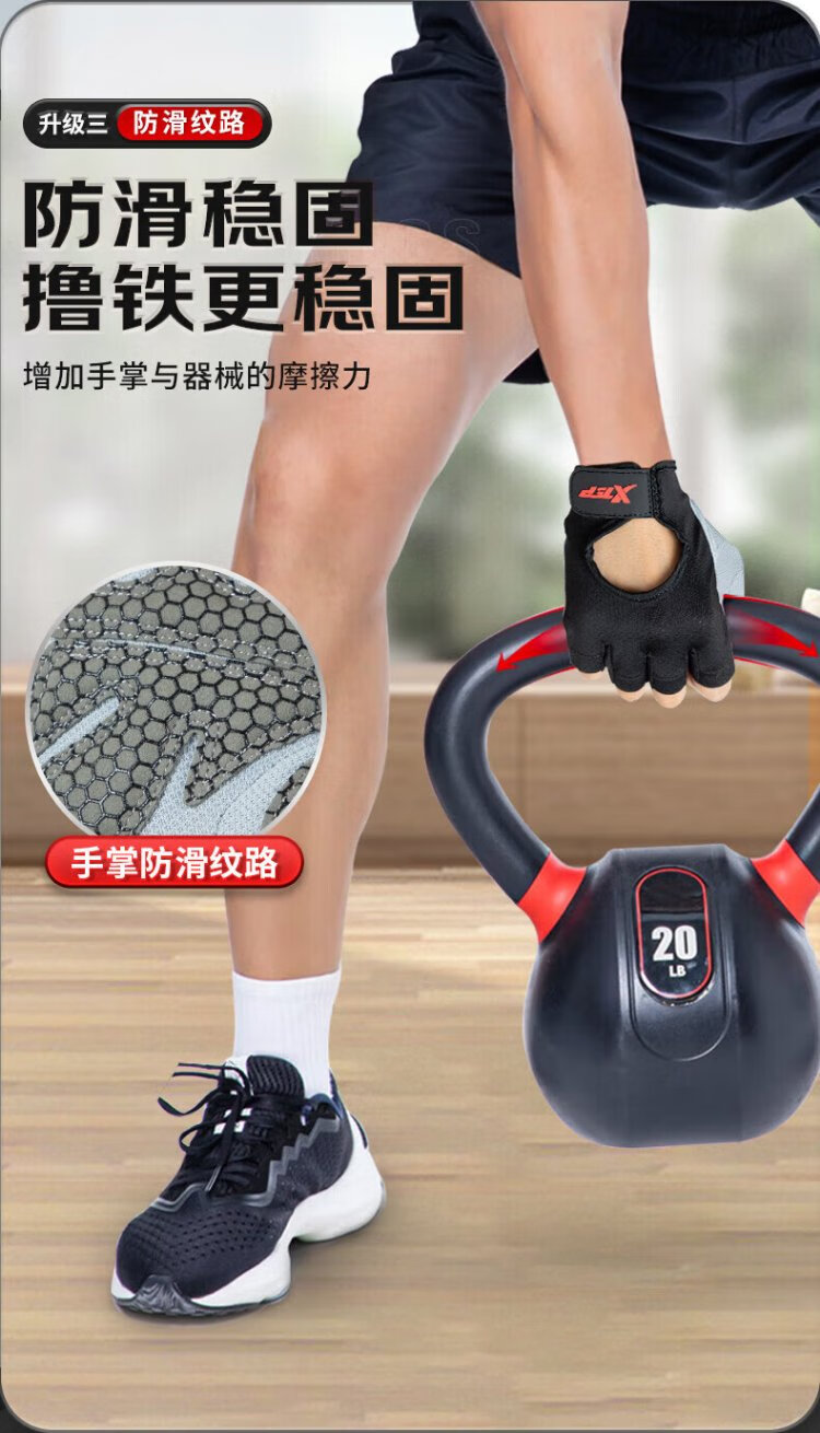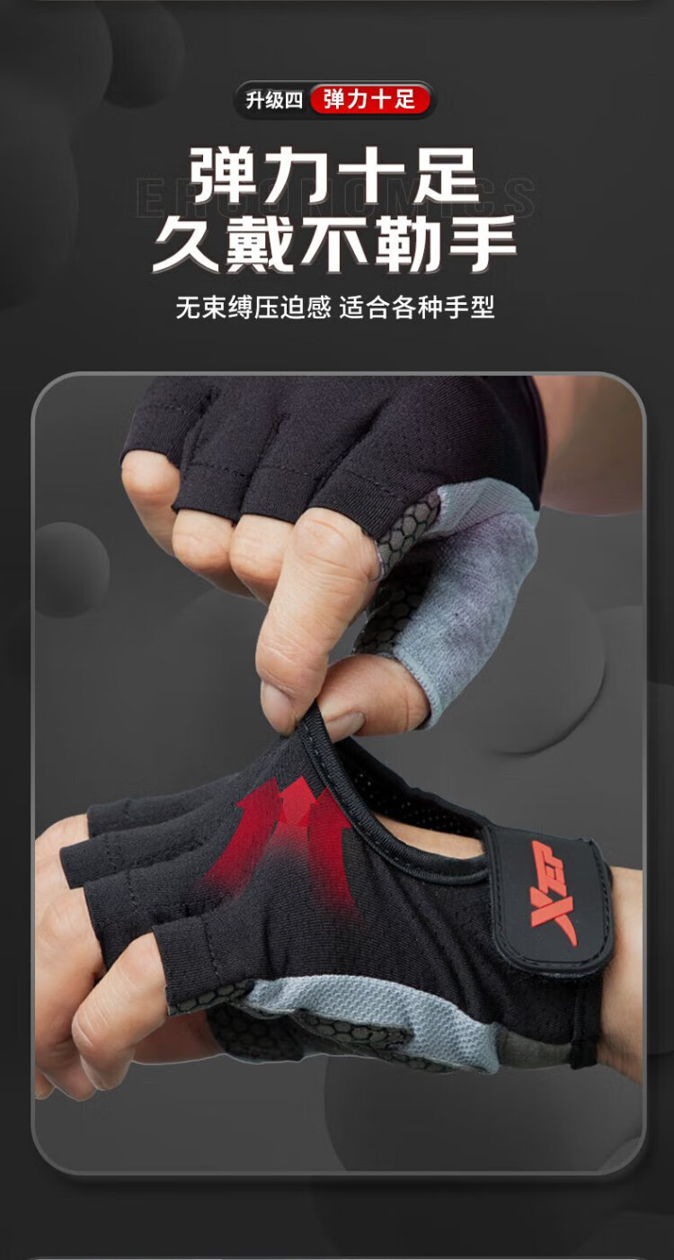XTEP fitness gloves cycling men's sports pull-ups horizontal bar anti-slip bicycle mountaineering half-finger dumbbell anti-cocoon XL