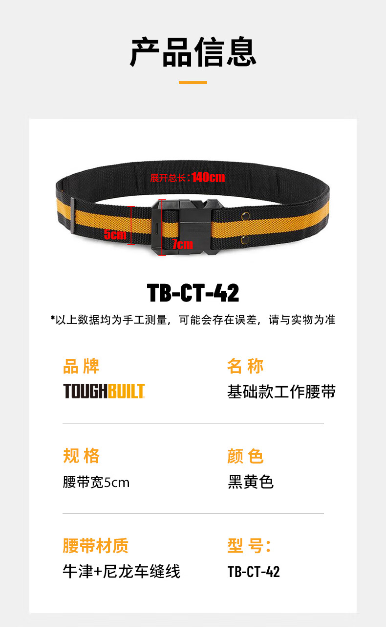 TOUGHBUILT TOUGHBUILT tool belt quick-hook buckle system buckle suspension component belt TB-CT-42