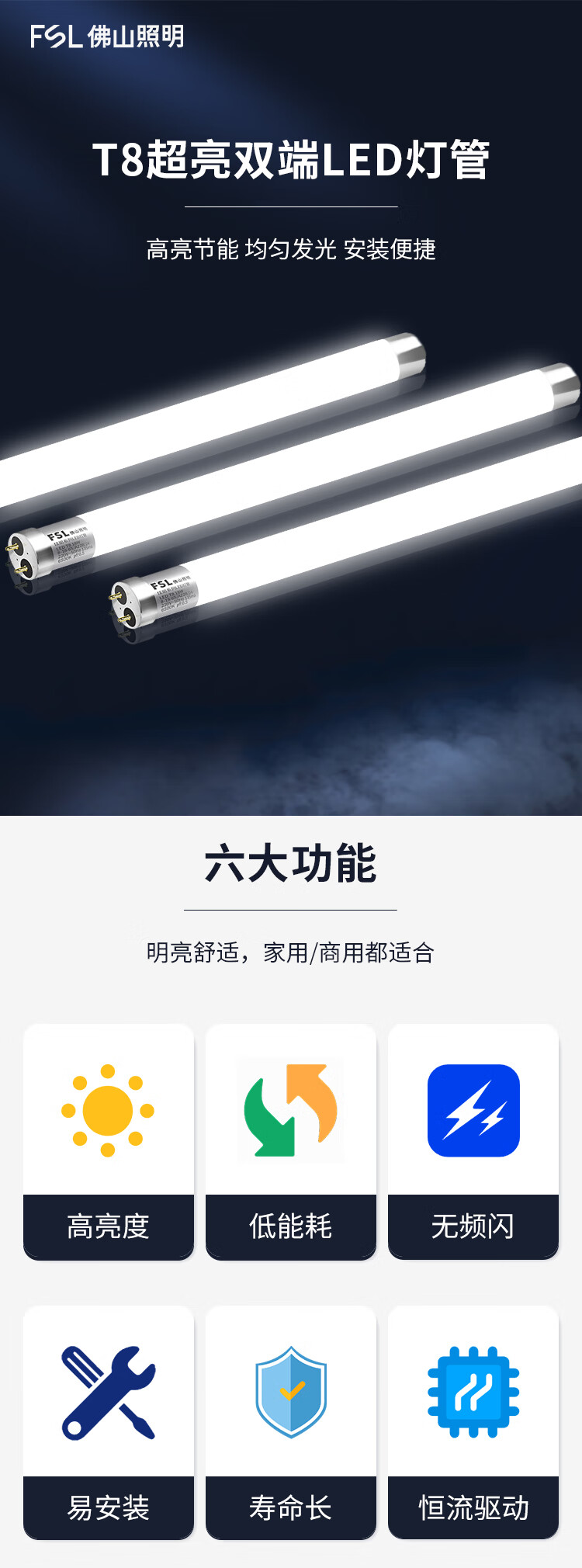 Foshan Lighting (FSL) T8 LED tube energy-saving fluorescent tube 1.2 meters 18W positive white light 6500K (5 pieces) double-ended power supply
