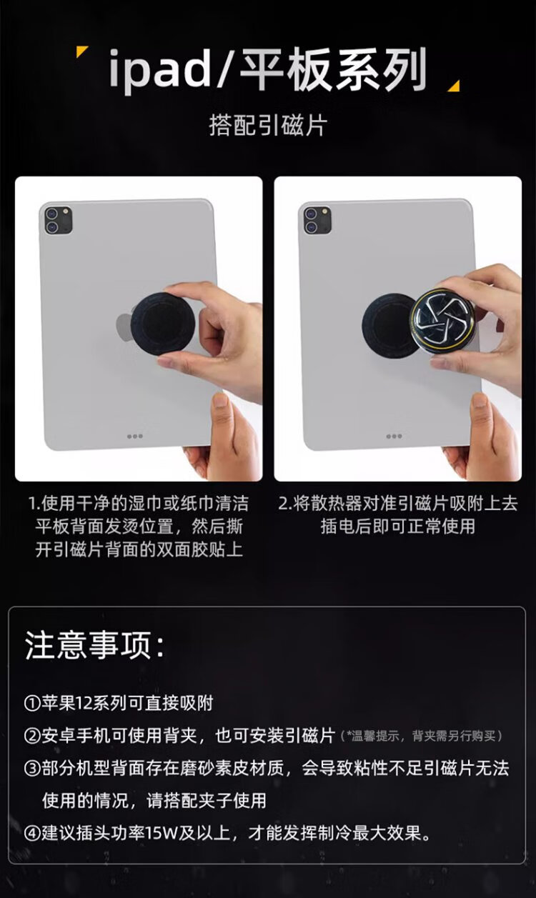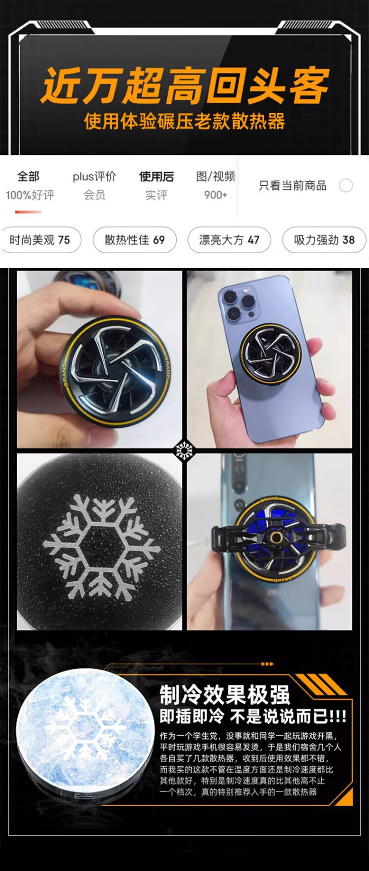 Topvork e-sports grade cooling mobile phone radiator magnetic live broadcast dedicated tablet cooling artifact refrigeration semiconductor suitable for ipad tablet apple black shark iqoo