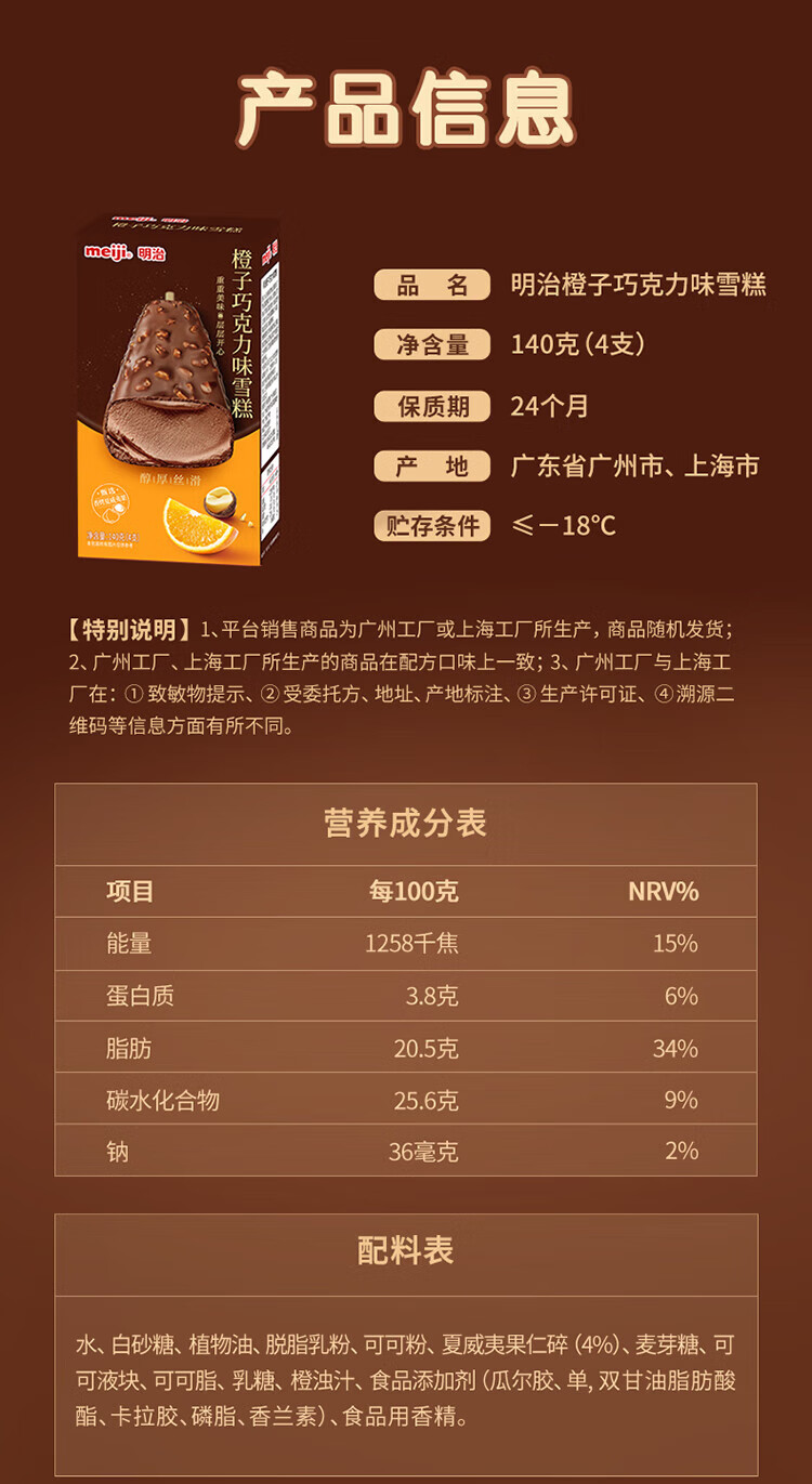 Meiji orange chocolate ice cream 35g*4 pieces in color box
