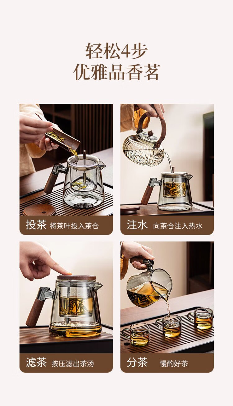 Puqi glass tea water separation cup teapot steaming integrated elegant cup teapot with inner tank filter large capacity tea set