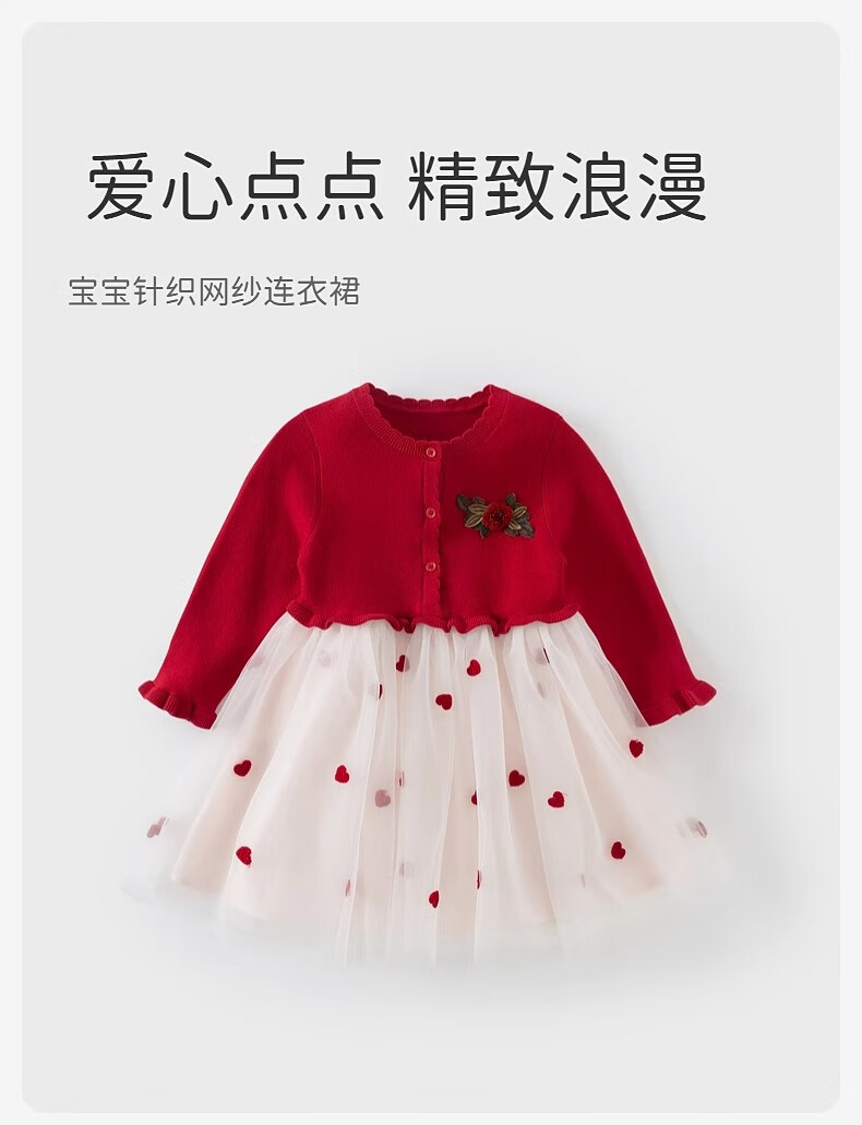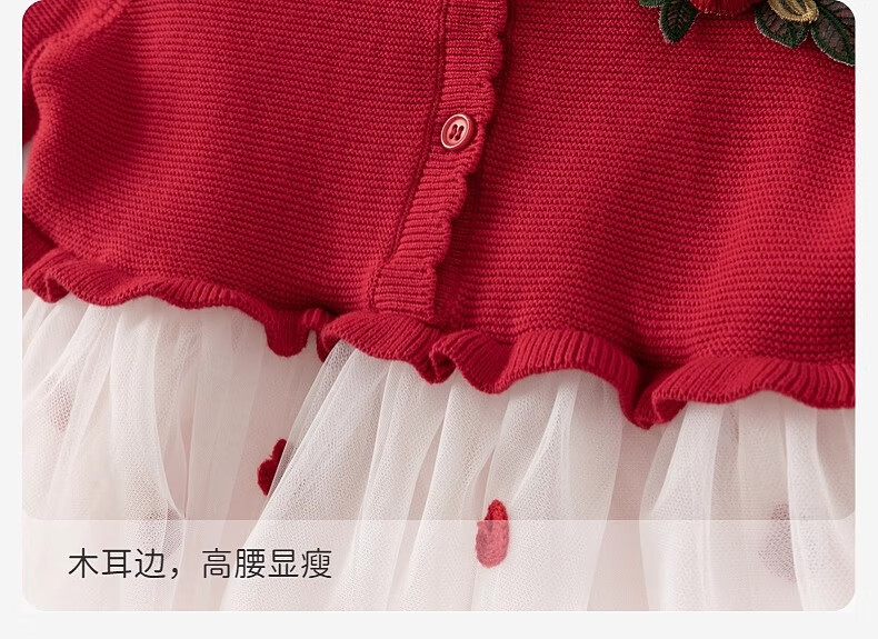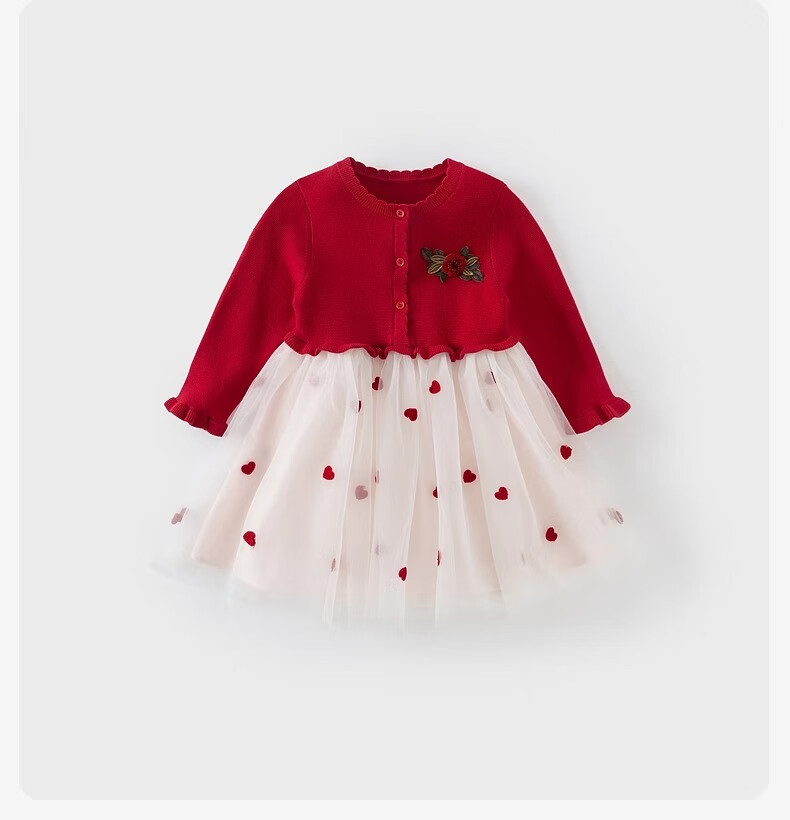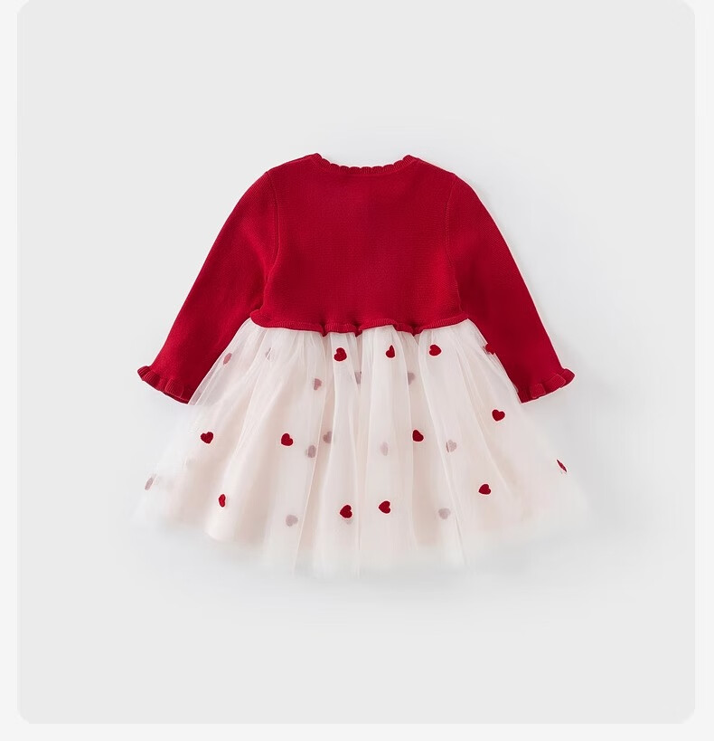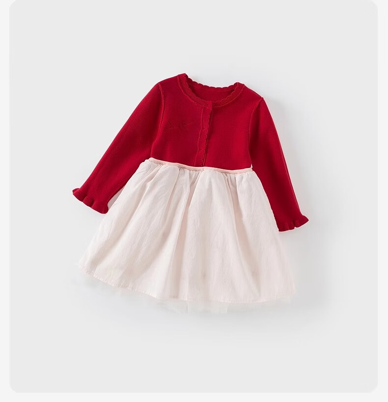 David Bella children's dress spring dress girls sweater mesh long sleeve red New Year's dress children's dress