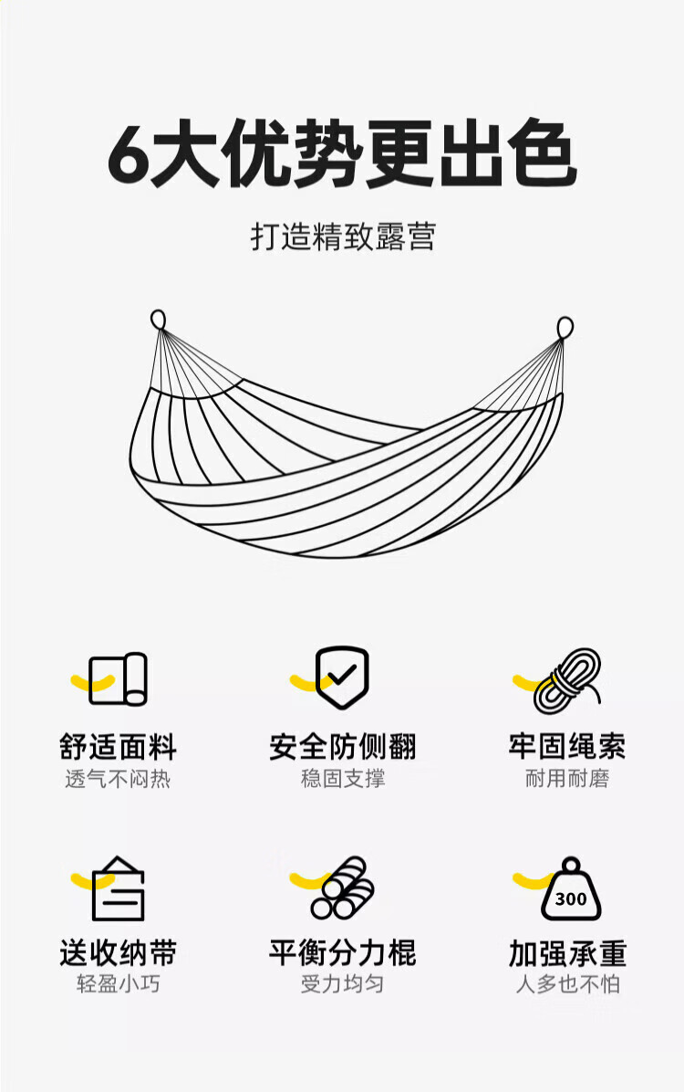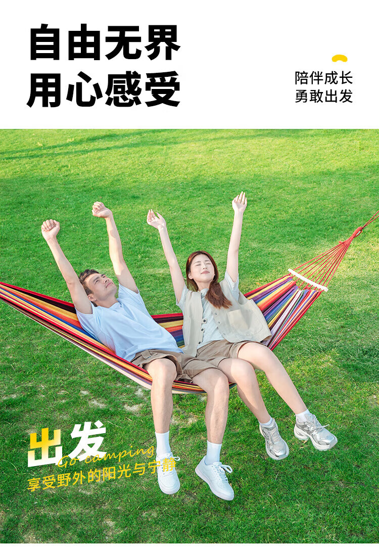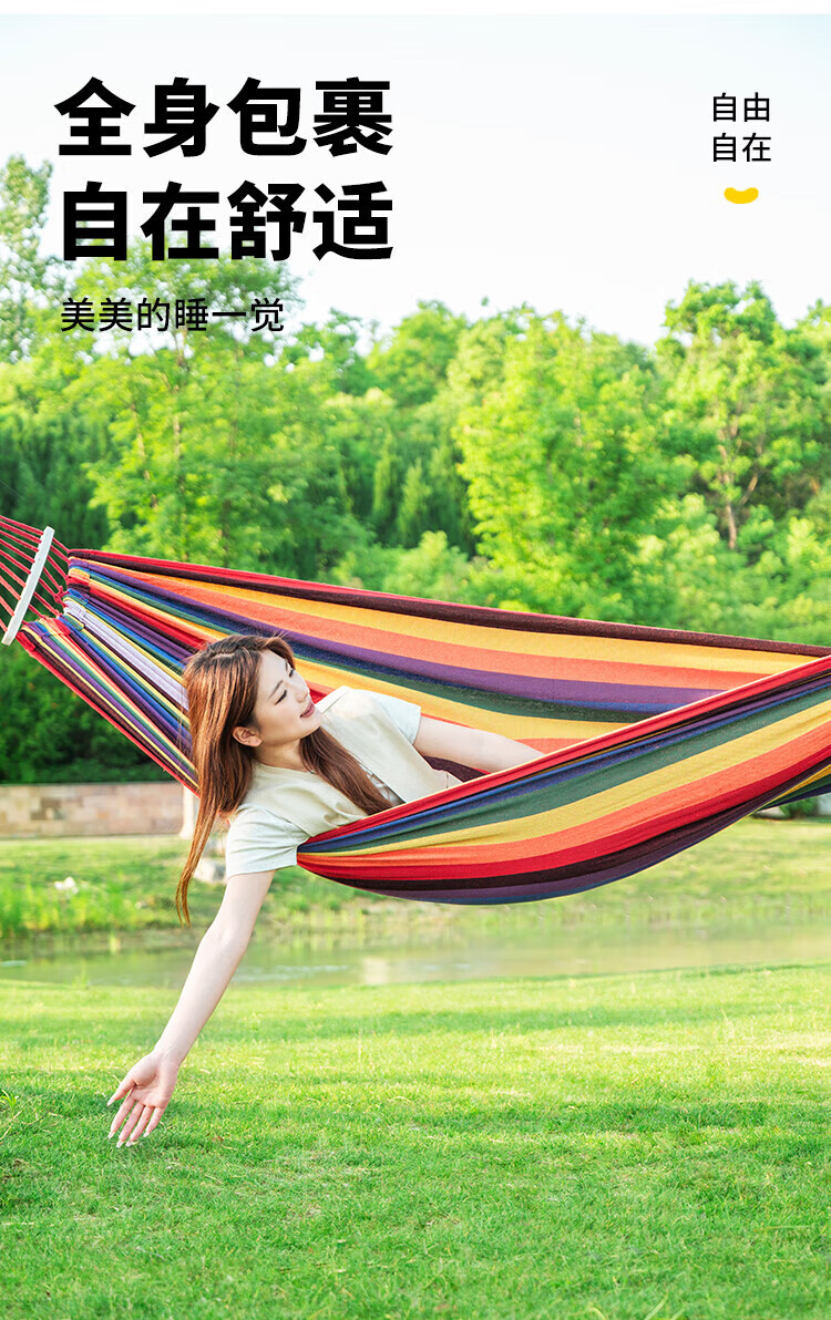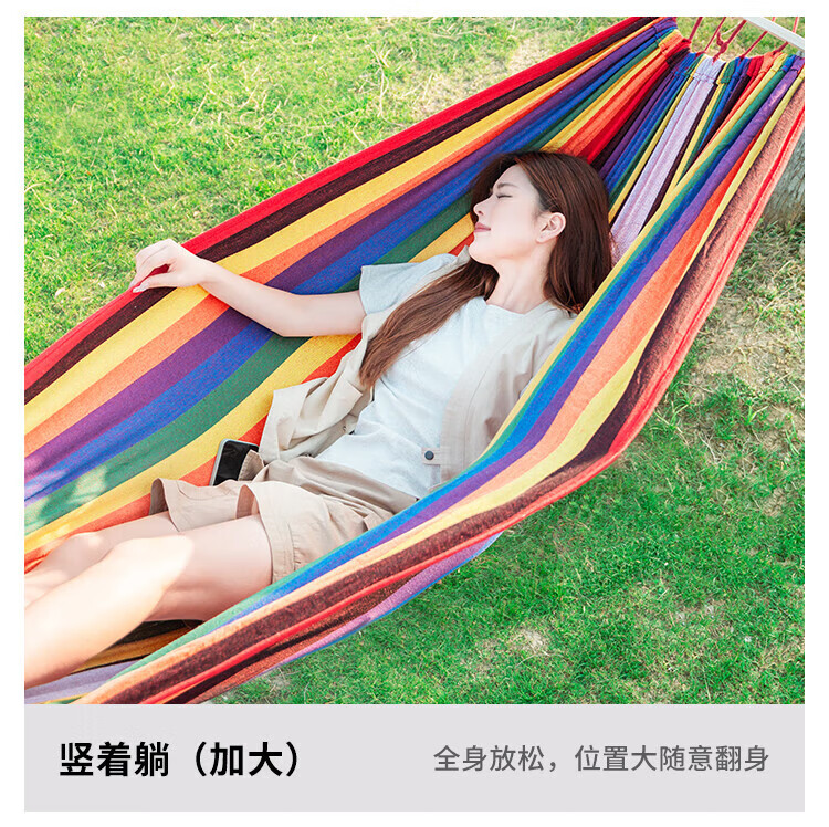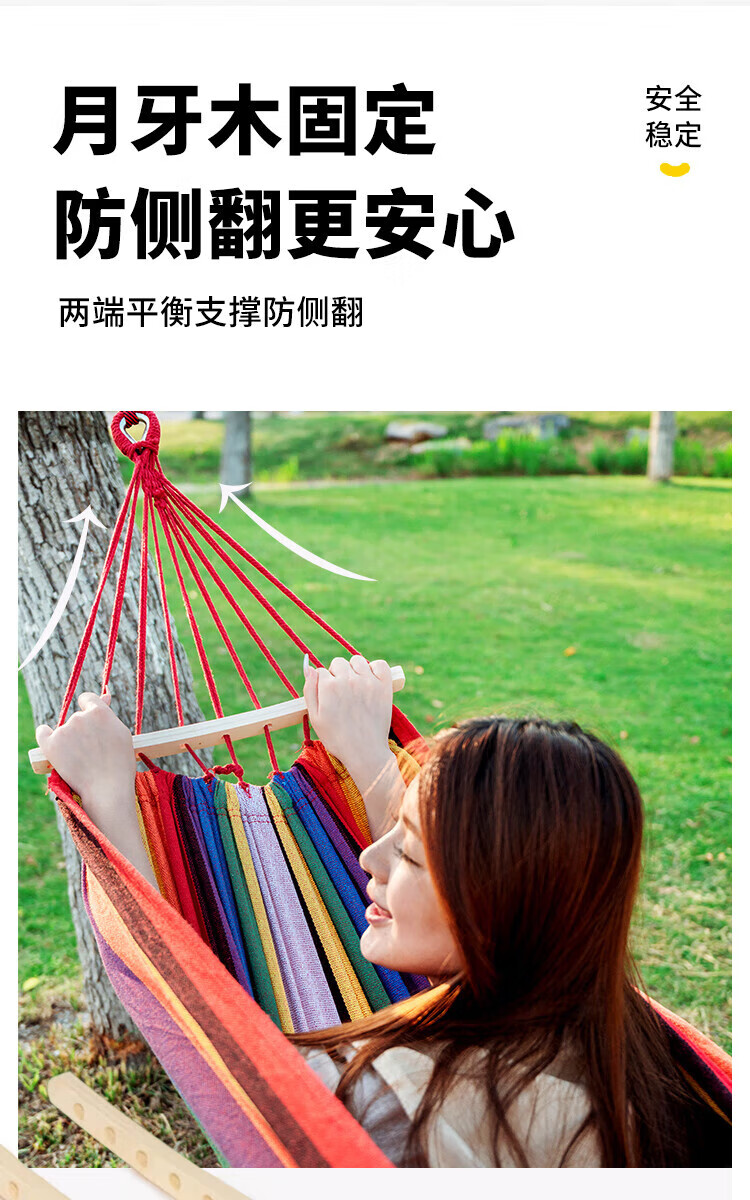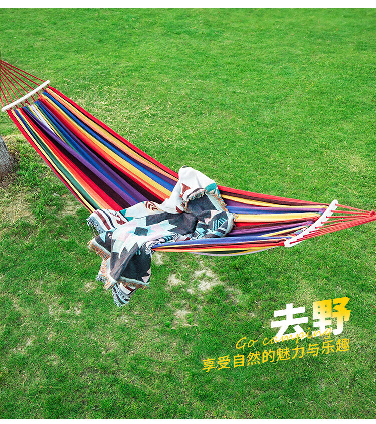 Explorer outdoor camping leisure thickened and widened canvas hammock indoor bent wood anti-rollover red double crescent hammock
