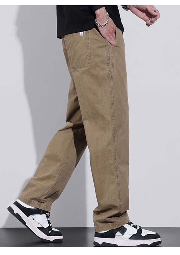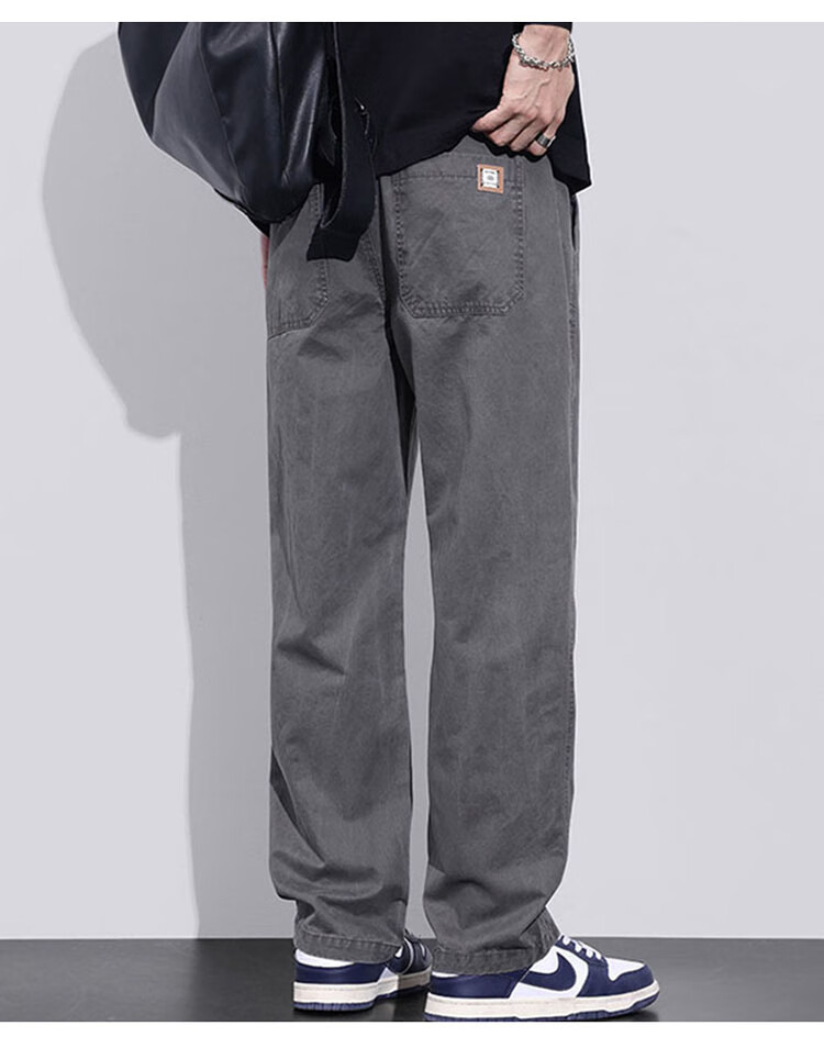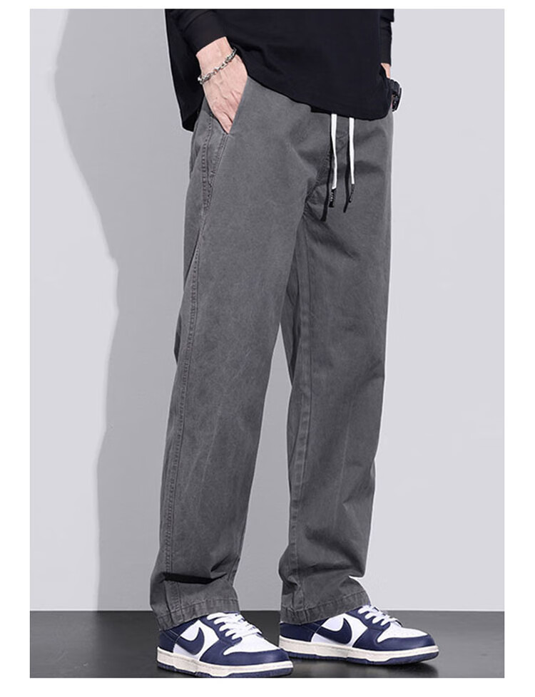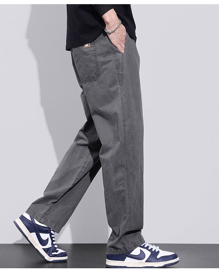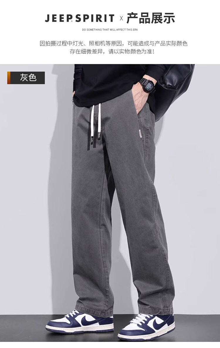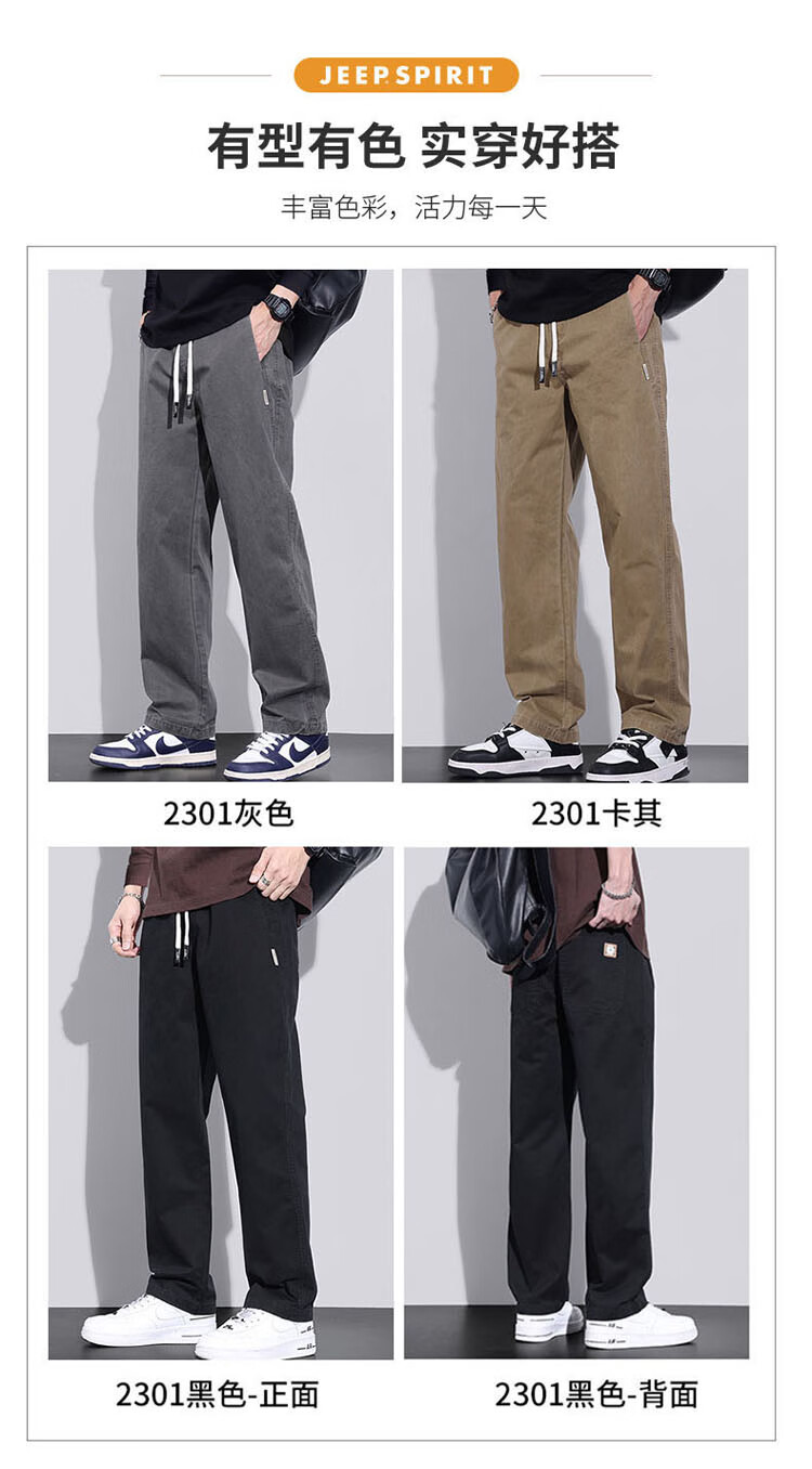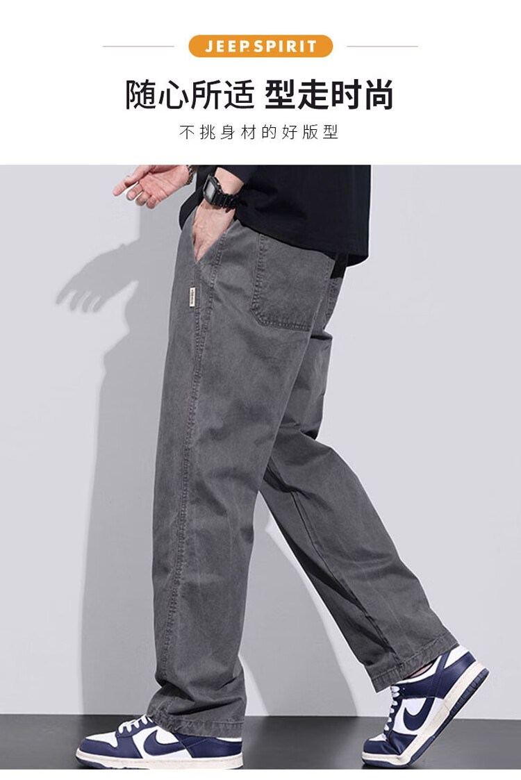 JEEP SPIRIT Jeep pure cotton casual pants men's autumn and winter loose straight pants men's workwear wide-leg pants gray 2XL