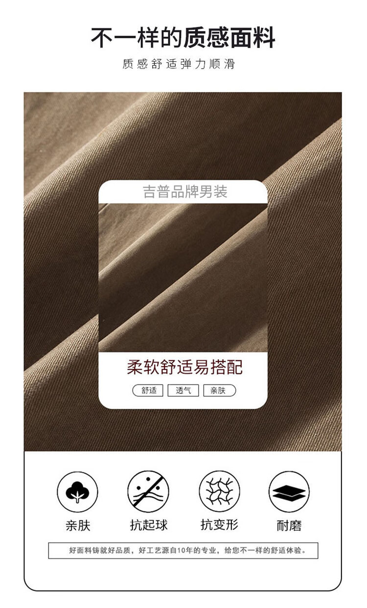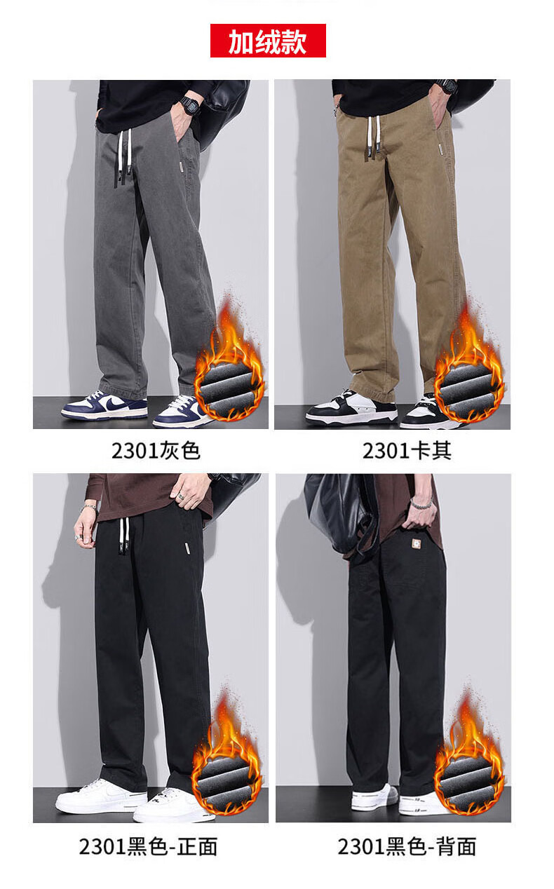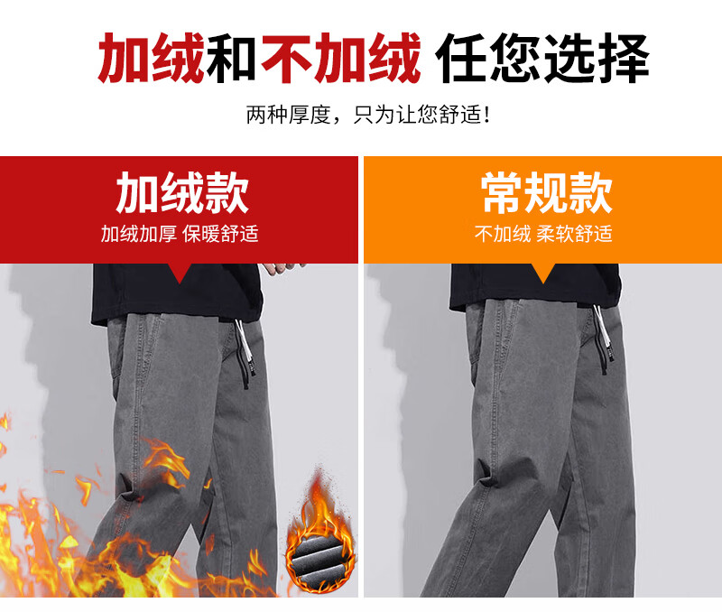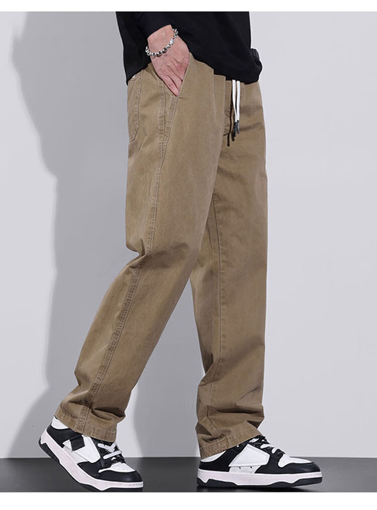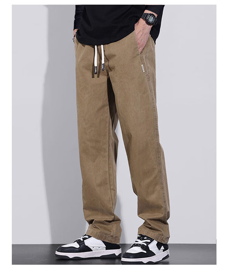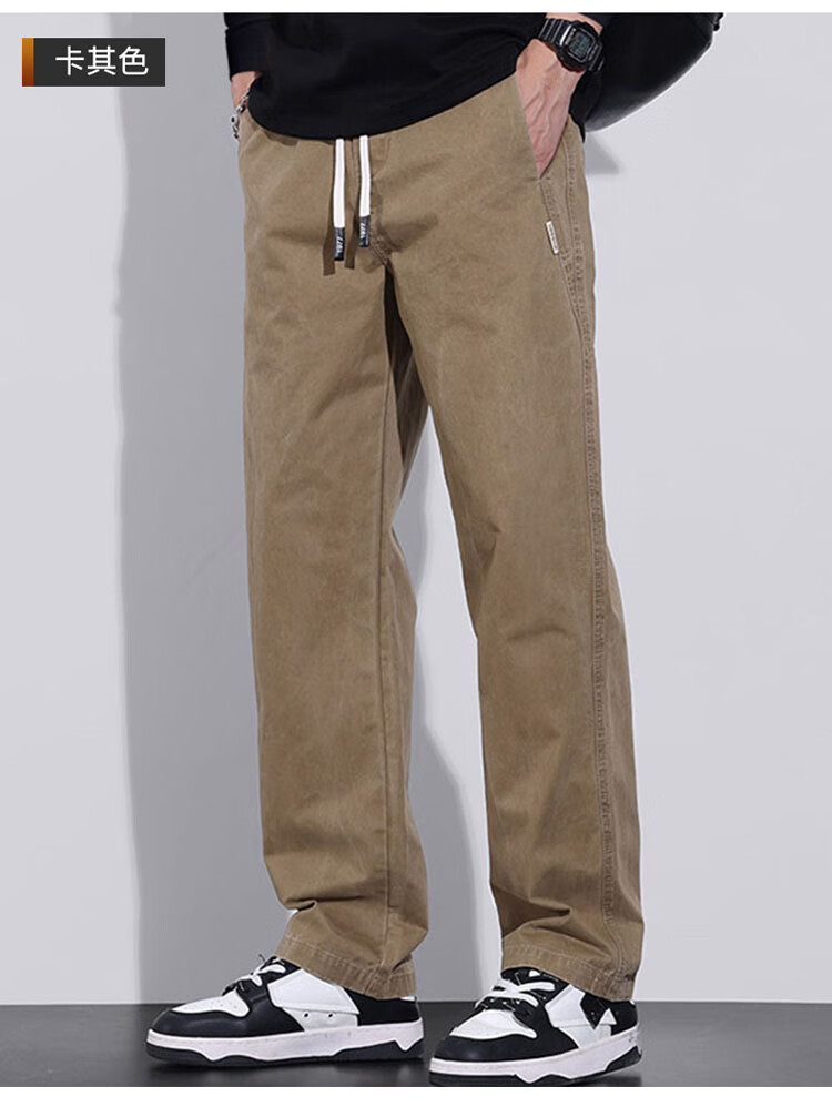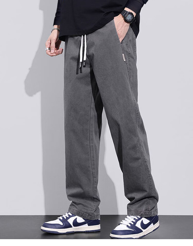 JEEP SPIRIT Jeep pure cotton casual pants men's autumn and winter loose straight pants men's workwear wide-leg pants gray 2XL