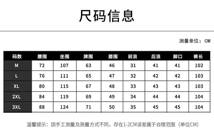 Outseam (cm) 99 cm 101.5 cm 104 cm 106.5 cm 109 cm