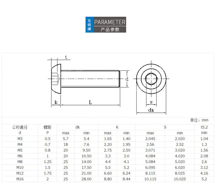 Dongming TONG 304 stainless steel hexagon socket pan head screws ISO7380 M3-M6 M4 *6 (50 pieces/bag)