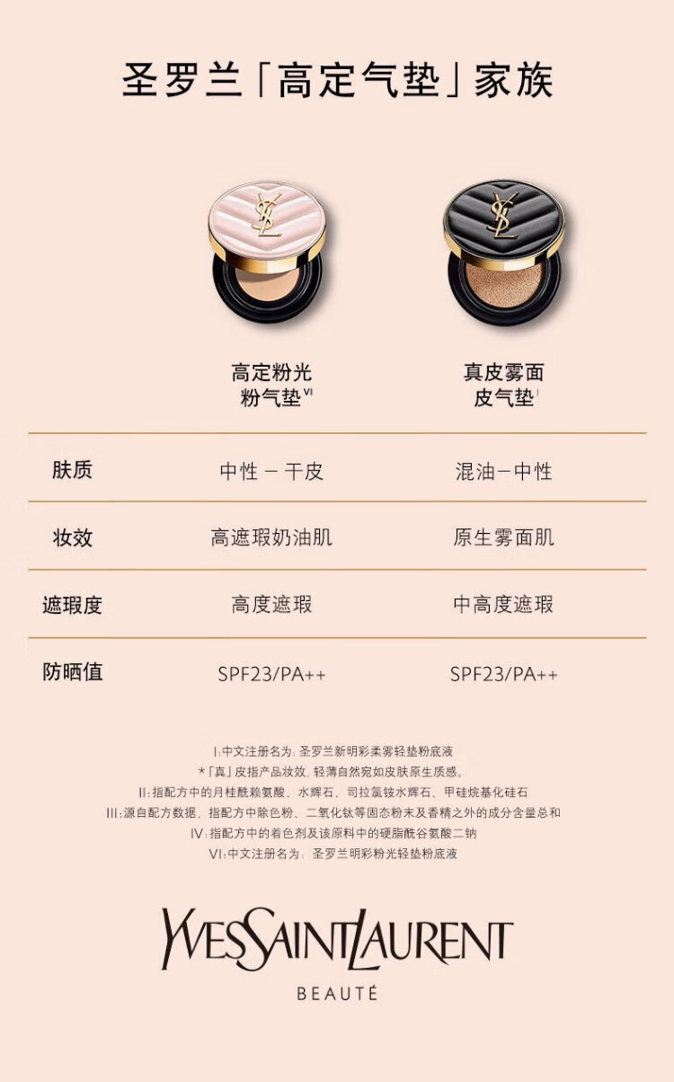 Saint Laurent (YSL) leather air cushion 20 refills, long-lasting non-removable sunscreen cosmetics birthday gift for girlfriend