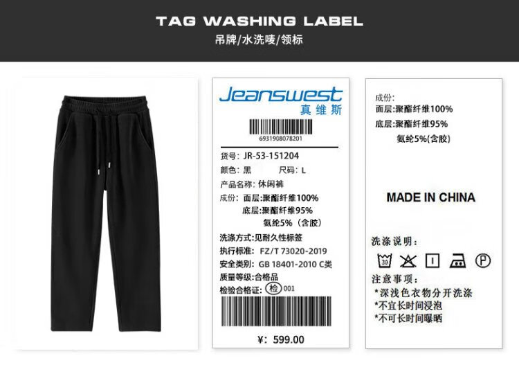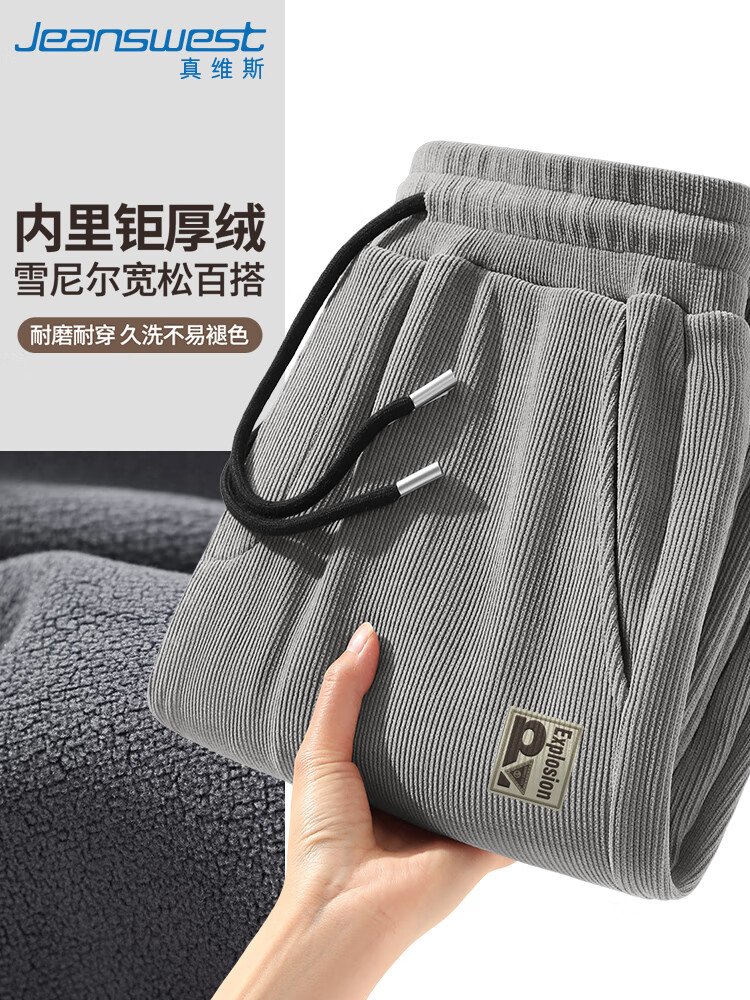 Jeanswest American style casual pants heavyweight chenille straight trousers men's Maillard retro trendy brand letter sports casual pants