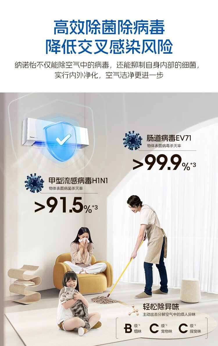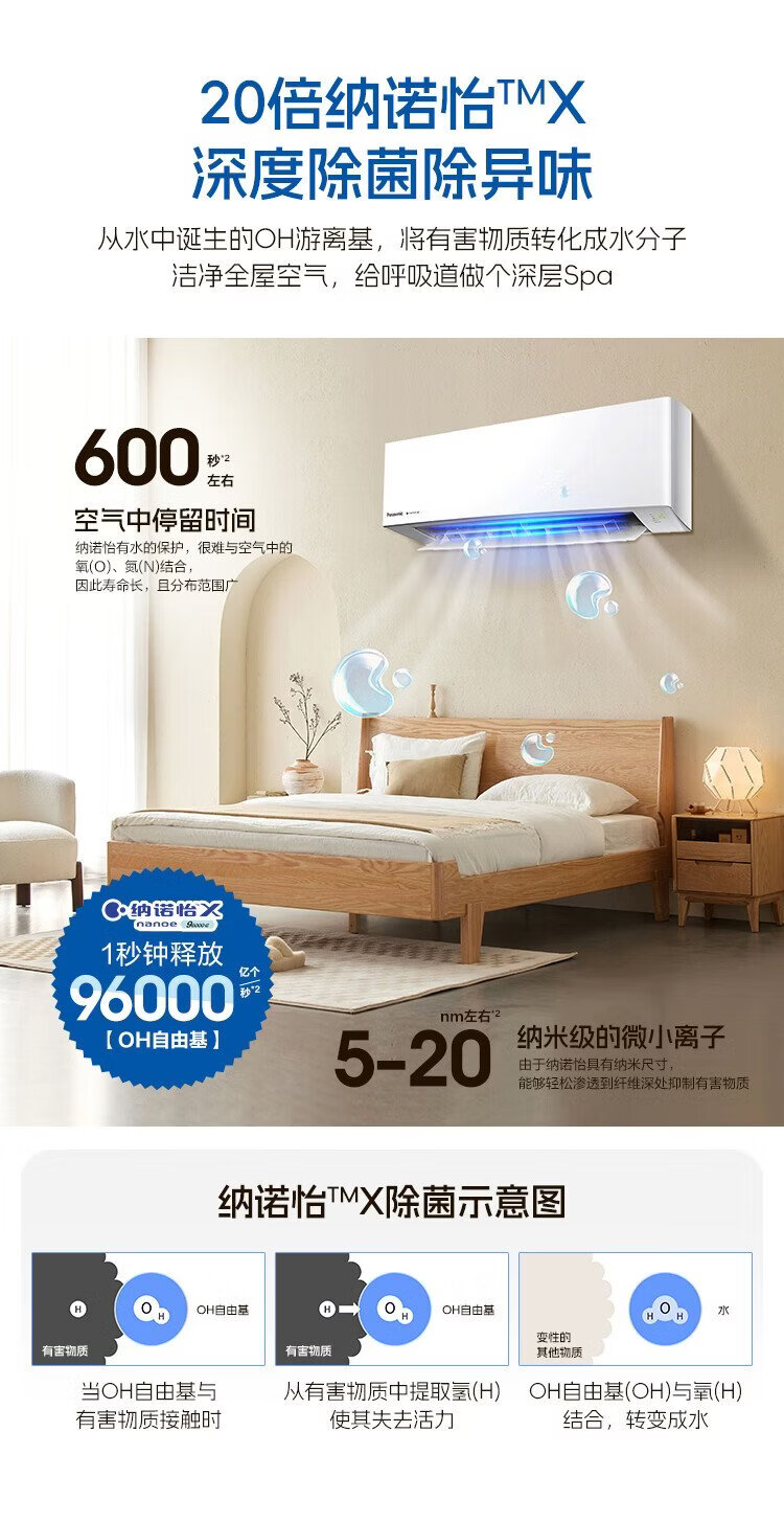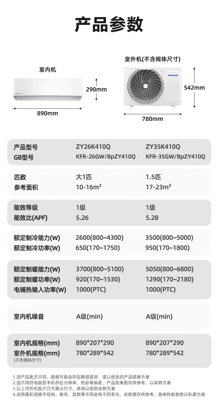 Panasonic air conditioner Yingfeng third generation large 1 horse new level energy efficiency power saving on-hook variable frequency heating and cooling original compressor copper tube sterilization healthy air state subsidy CS-ZY26K410Q