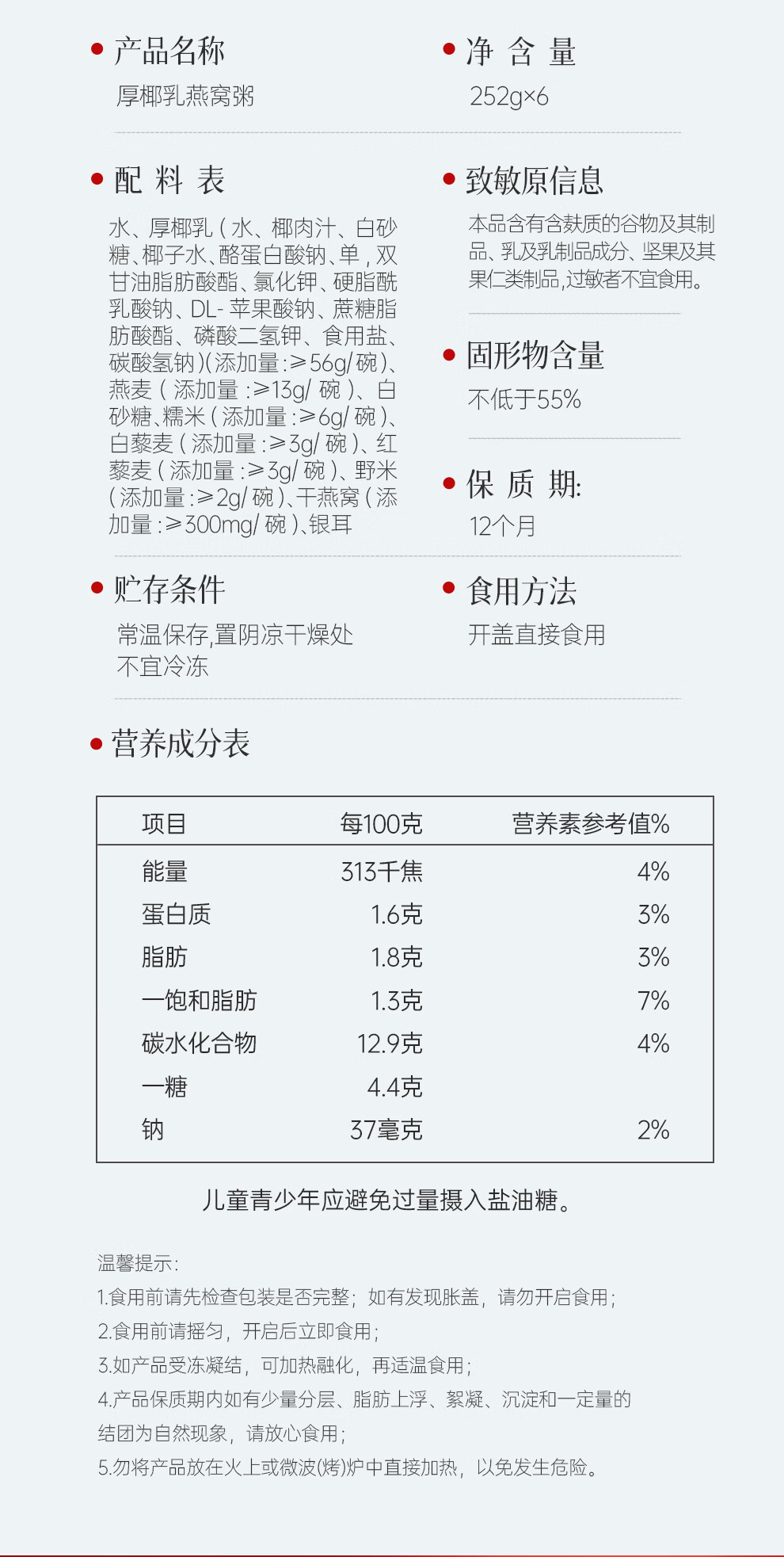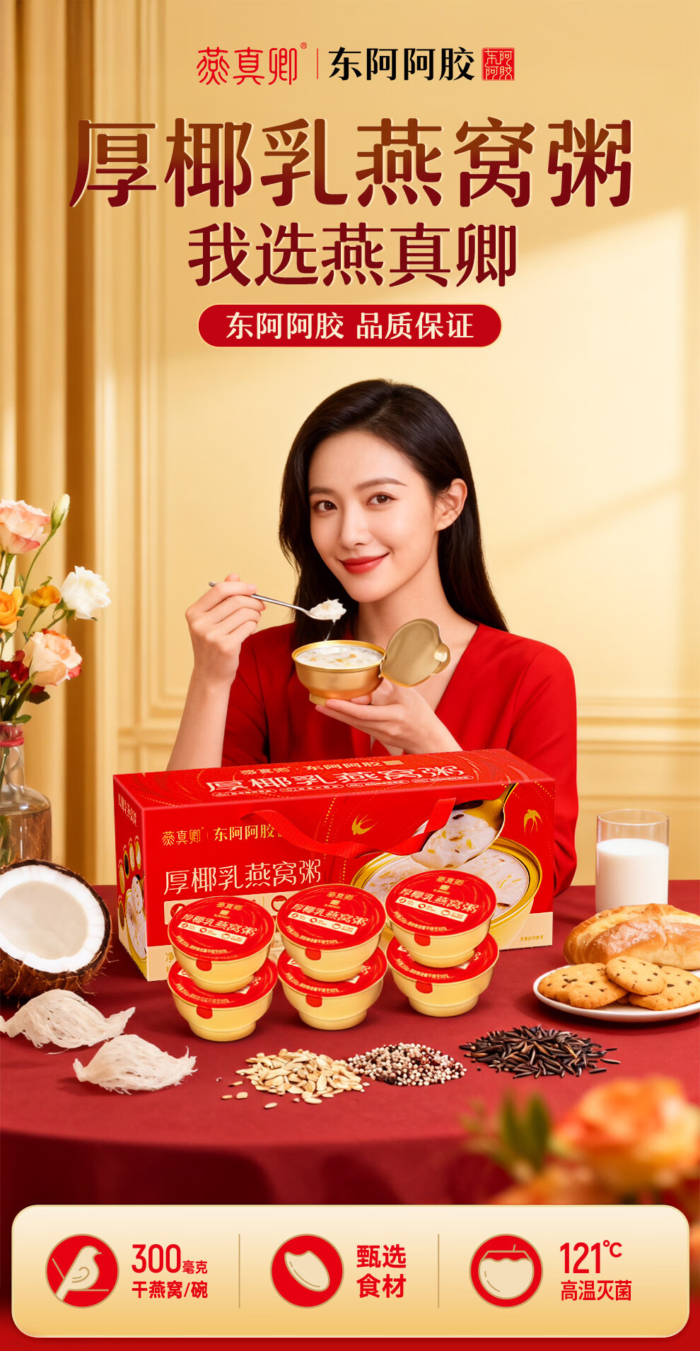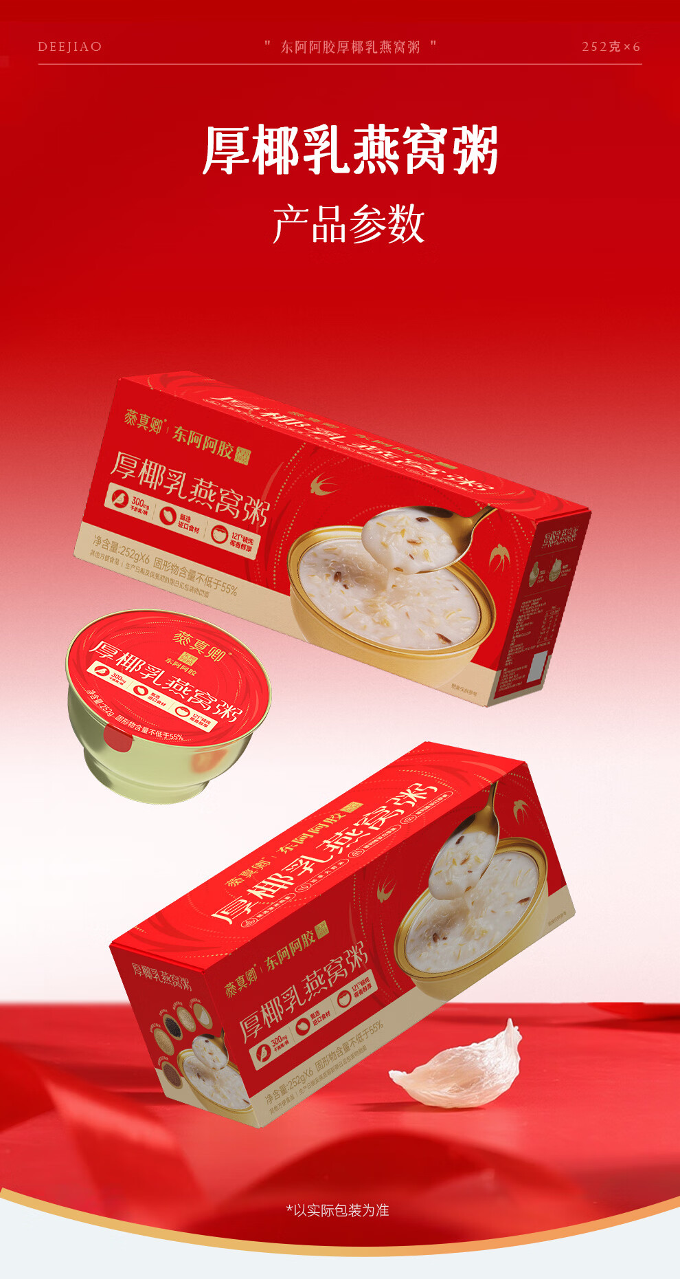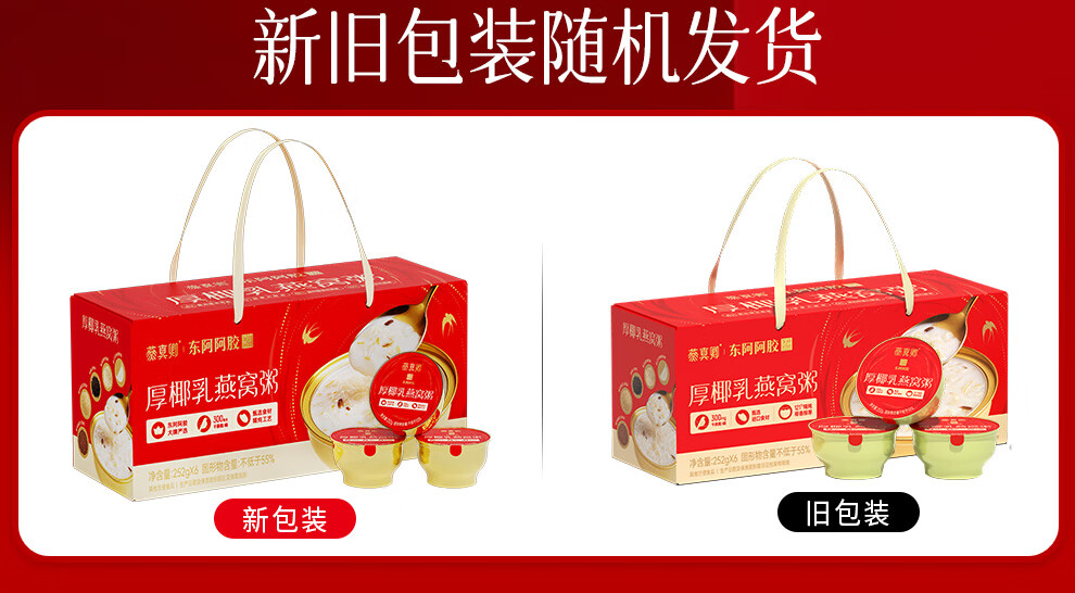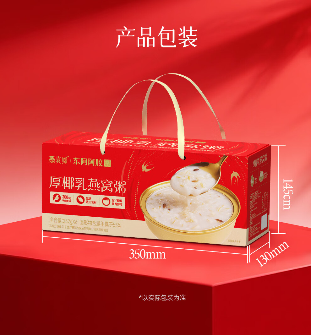 Dong'e donkey-hide gelatin thick coconut milk bird's nest porridge 252g*6 bowl gift box ready-to-eat bird's nest breakfast porridge, nourishing and nutritious gifts for relatives and friends