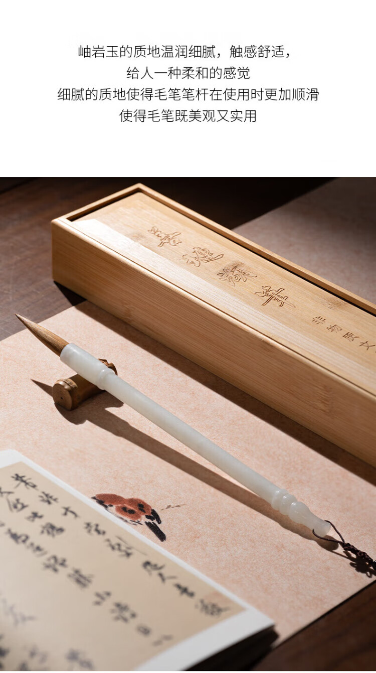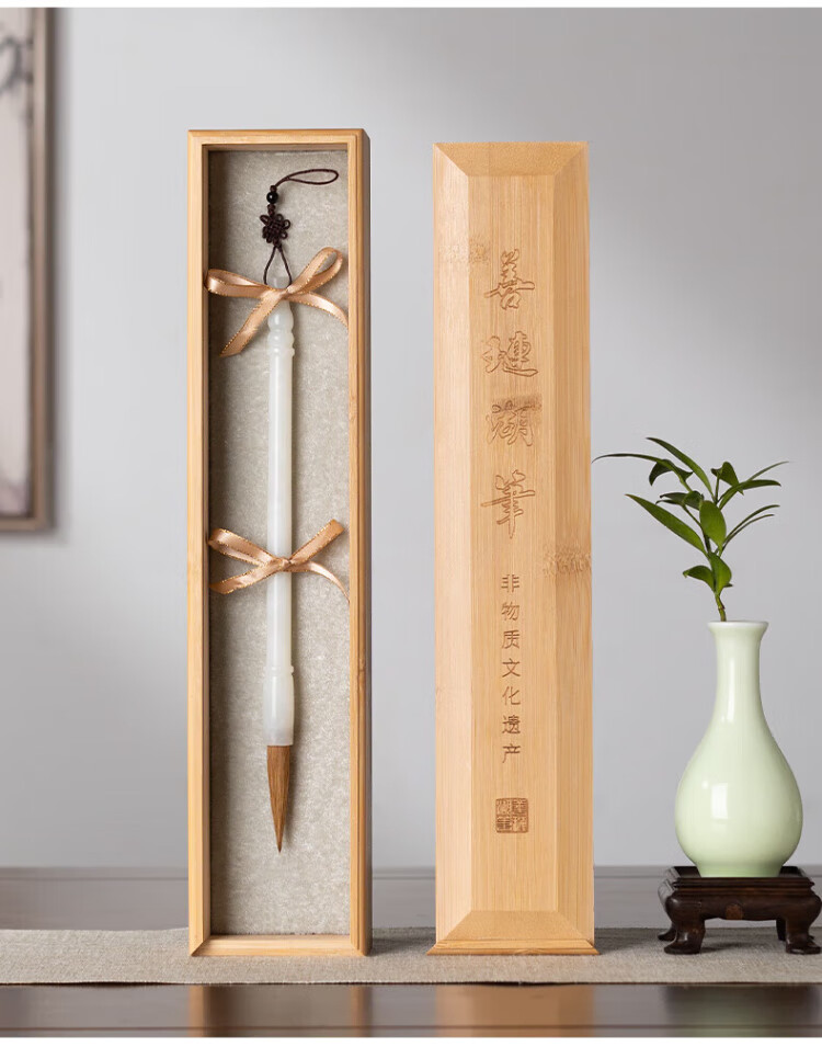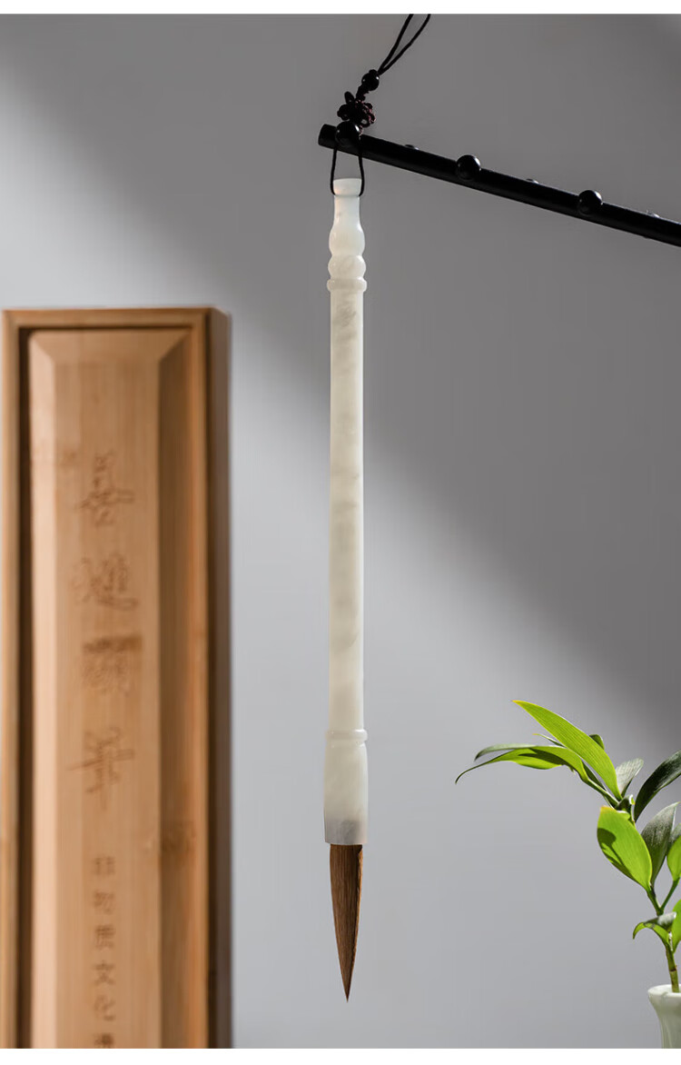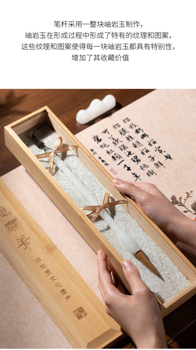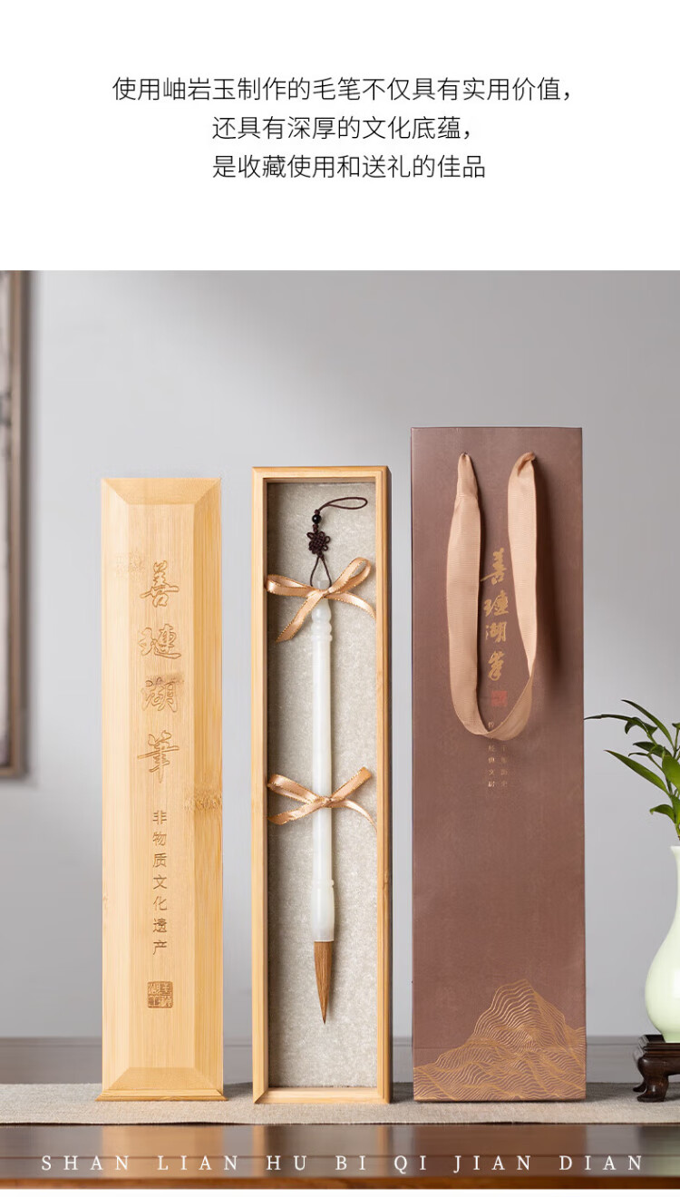 Shanlian Lake Pen Wolf Hair Brush Set Natural Jade Solitary Xiuyan Jade Calligraphy Special Brush Professional Grade Medium and Large Regular script Four Treasures of the Study High-end Brush Gift Box Holiday Gift