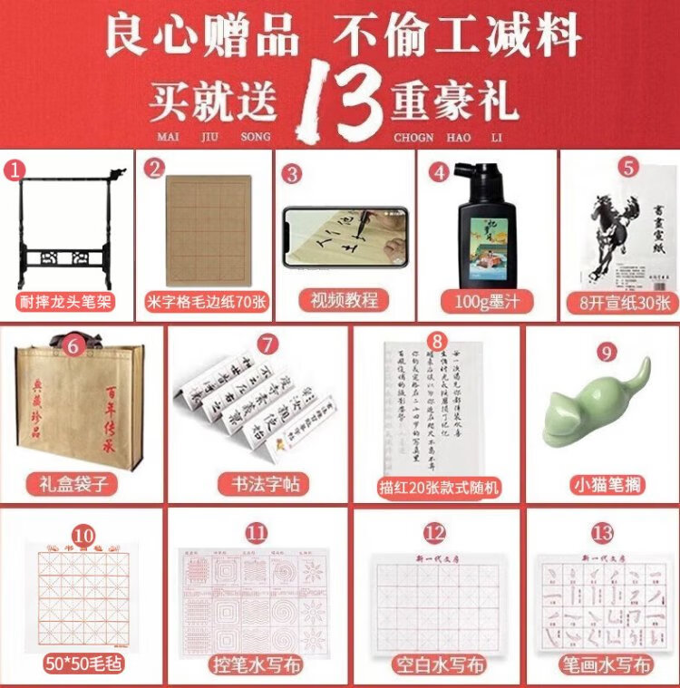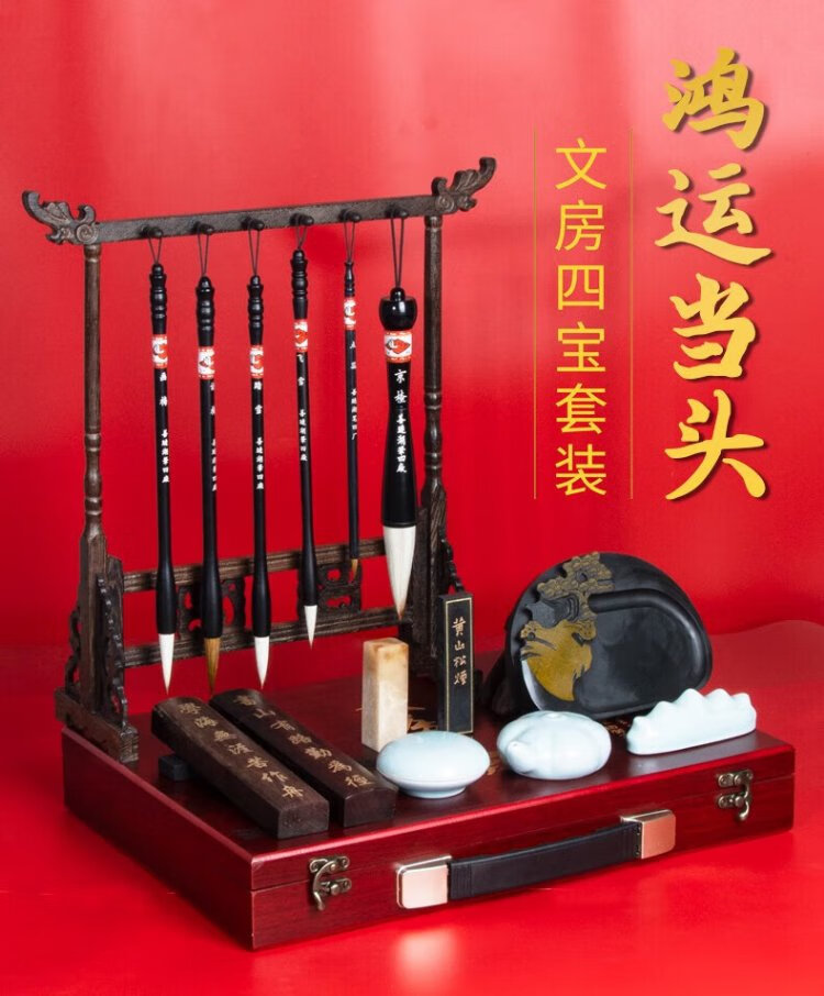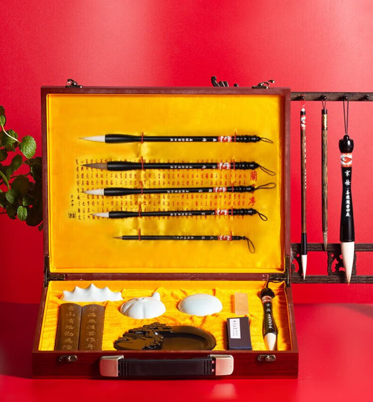 Shanlianhu pen, high-end study gift box, four treasures of study set, pen, ink, paper and inkstone calligraphy set, beginner practice brush and inkstone, introduction to copying, popular products, retro gift box