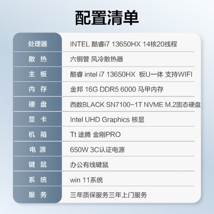 Ningmei Duzhuo i7 13650HX/D5 memory/1TB solid state/home office commercial assembly computer host/UPCdeepseek