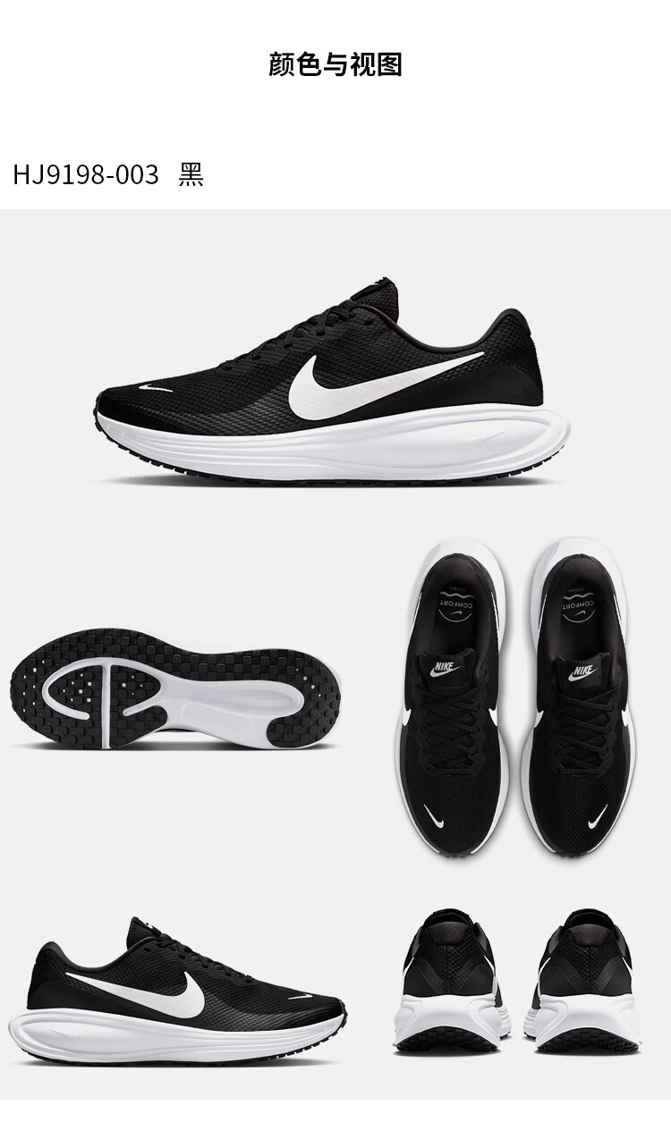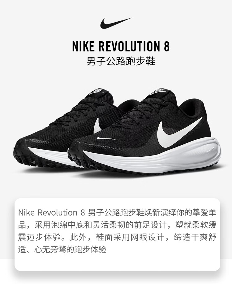 Nike NIKE Men's Running Shoes Cushioning REVOLUTION 8 Sports Shoes HJ9198-003 Black and White 42.5