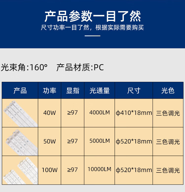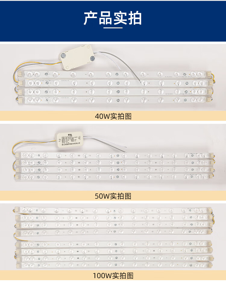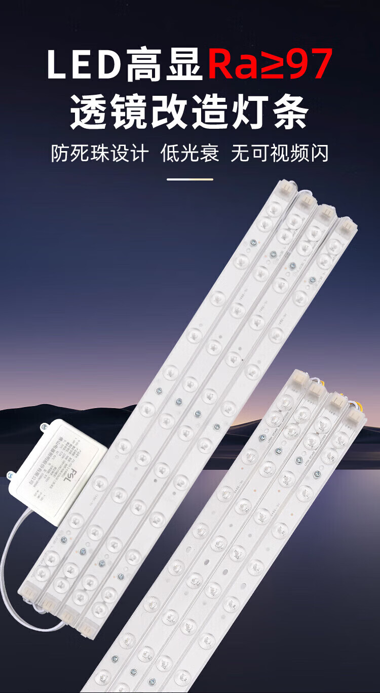 FSL Foshan Lighting LED ceiling light strip light source module wick 220V one for eight 100W 520*18 three-stage color adjustment Muguang 97 high display