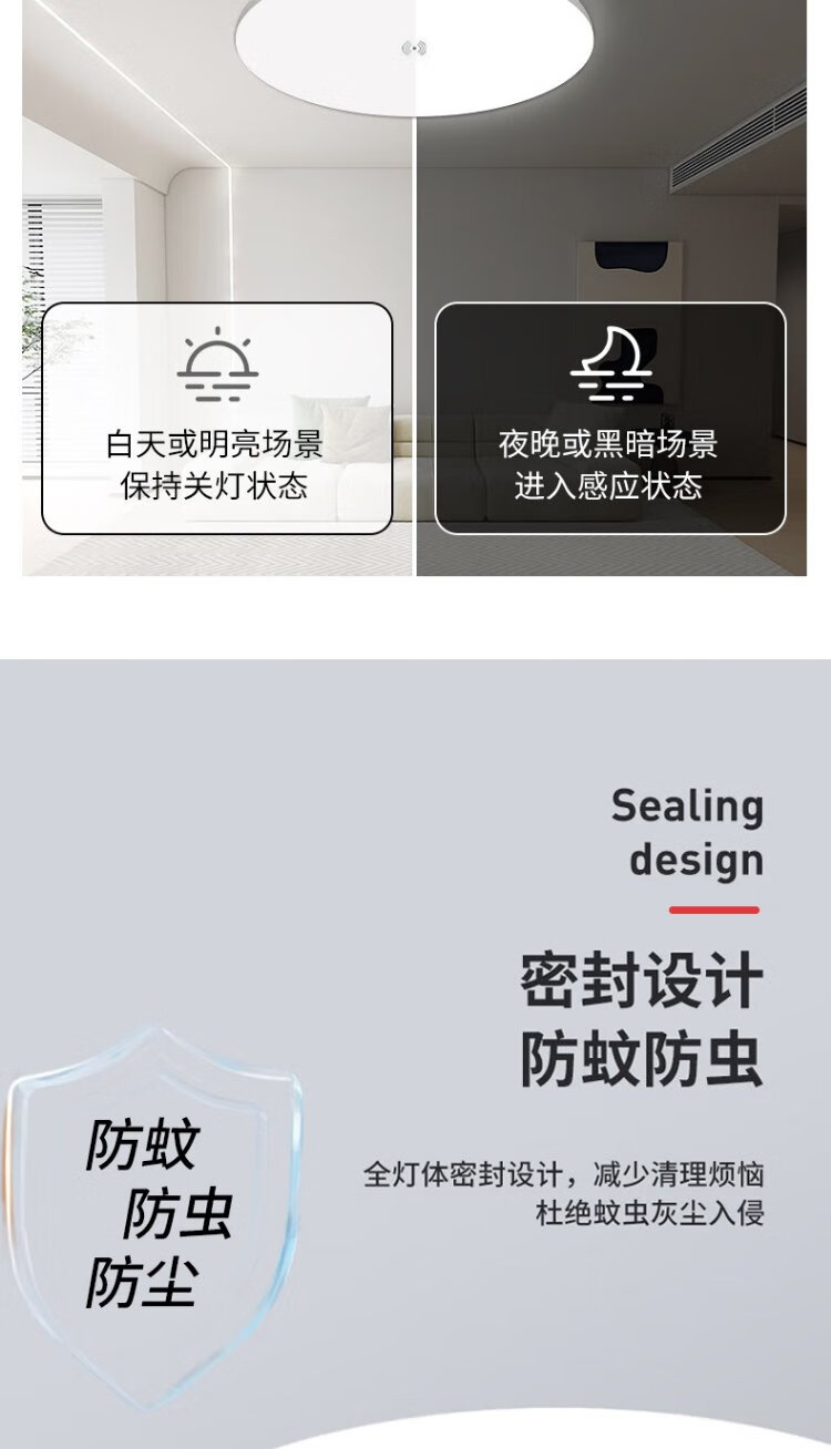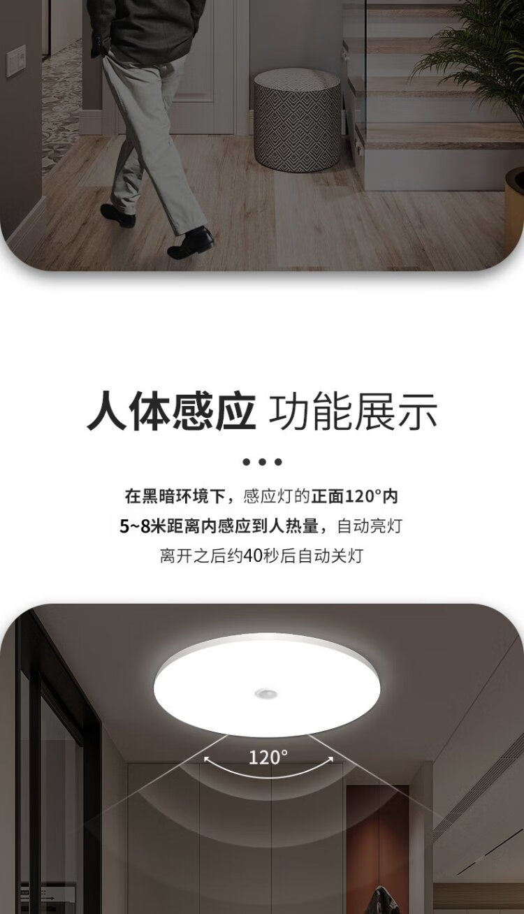 Gongtai human body sensing LED three-proof ceiling light 12W white light ultra-thin energy-saving high-brightness stair aisle corridor corridor light smart light